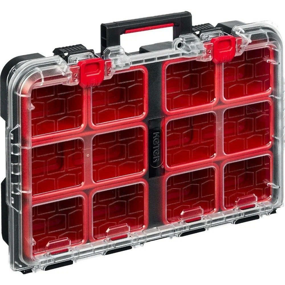Ящики изготовлены из прочного пластика, что гарантирует их долговечность и надежность. Усиленные стенки и прочные металлические защелки обеспечивают дополнительную защиту инструментов. Компактная складная ручка позволяет легко переносить ящики, а также обеспечивает удобство при хранении. Система Keter Stack's System оснащена отсеками для хранения как крупного, так и мелкого инструмента. Это позволяет организовать рабочее пространство и всегда иметь под рукой необходимые инструменты.
