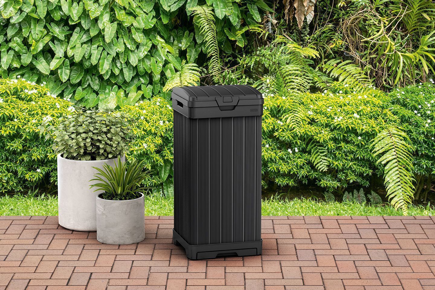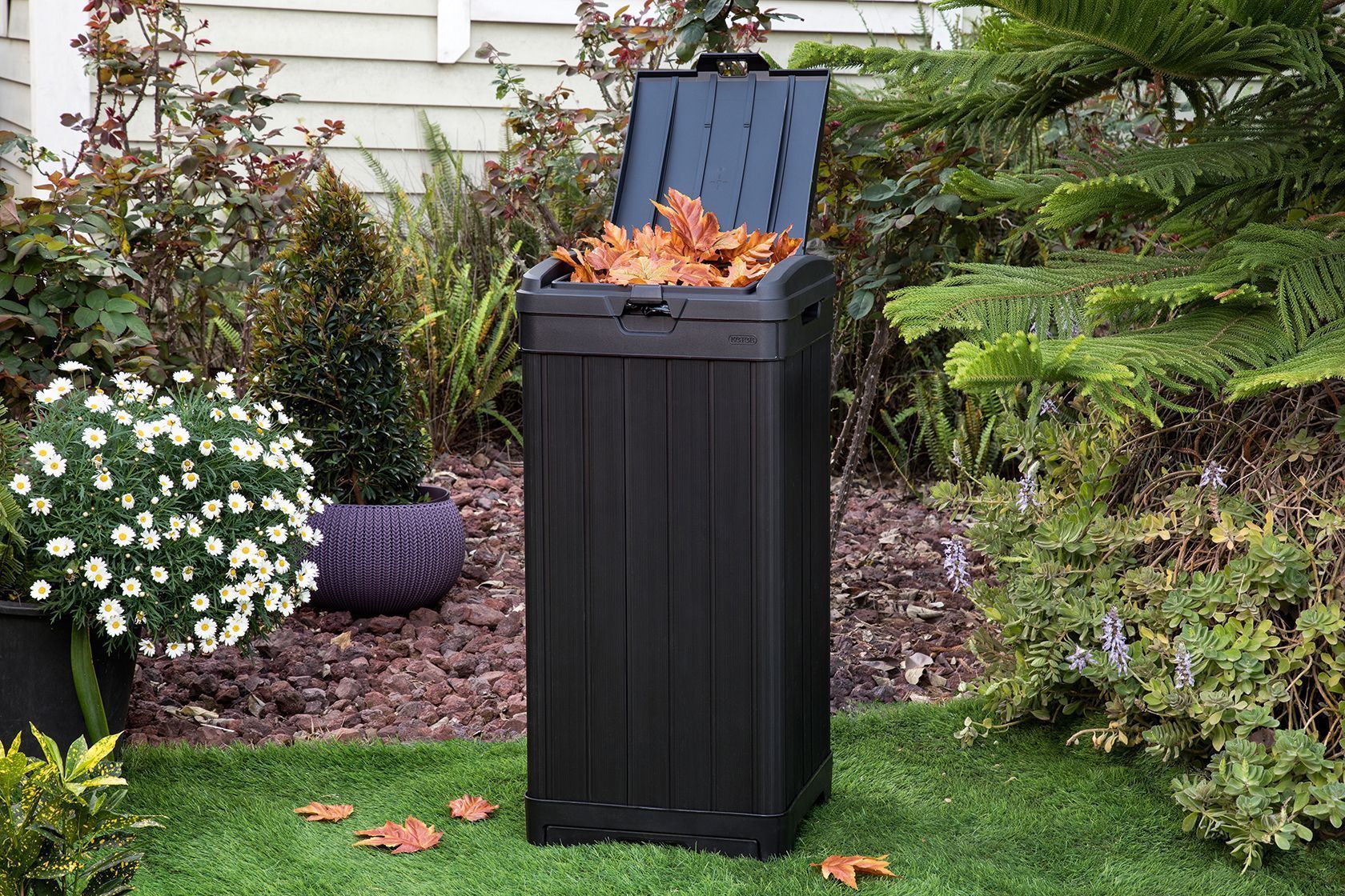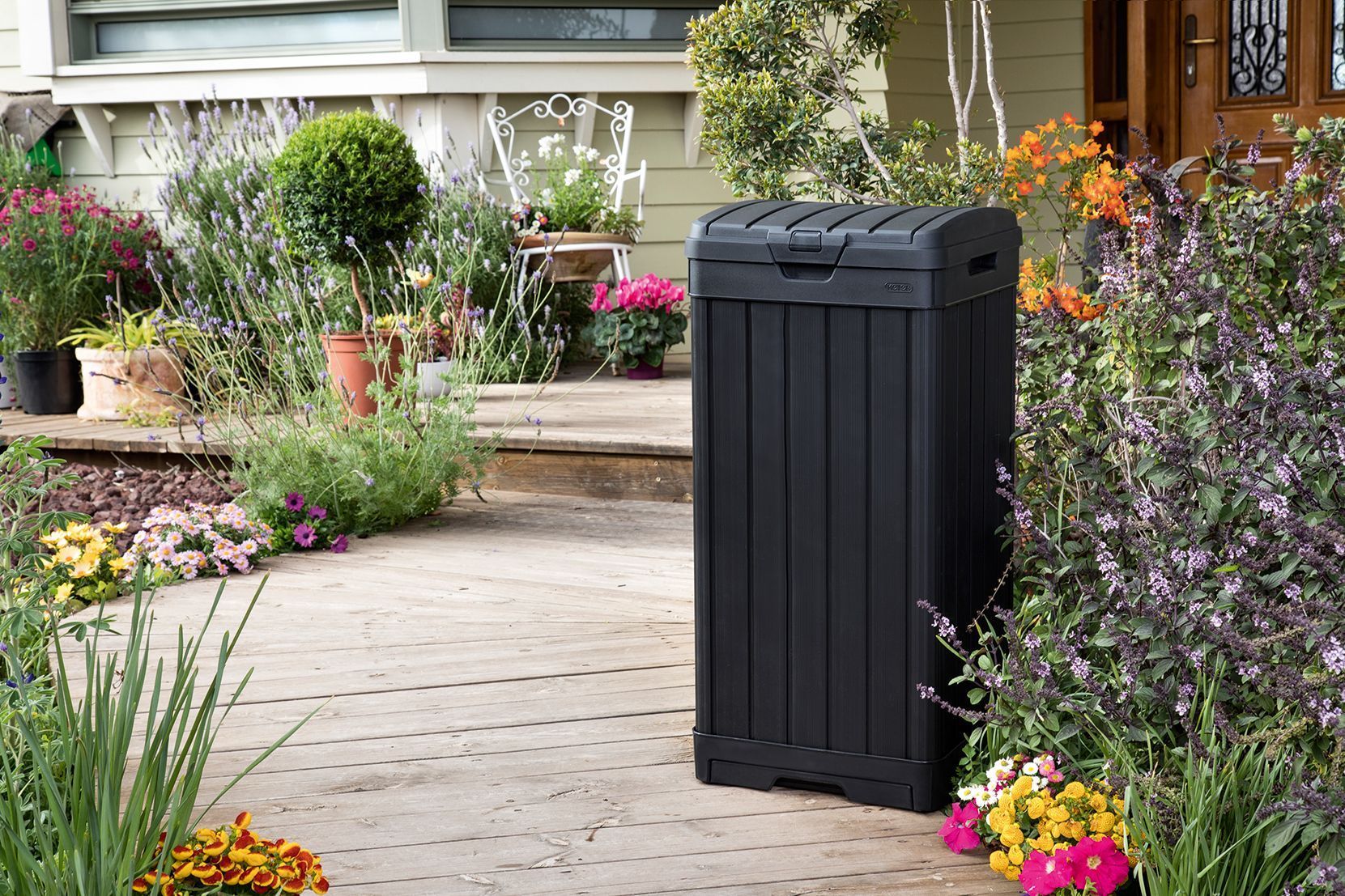 BALTIMORE 125L - это практичный и стильный уличный мусорный бак. Текстурные панели придают баку дополнительный более натуральный внешний вид. Изготовлен из прочного пластика, устойчивого к любым погодным условиям и УФ(не выгорает на солнце). Инновационная двойная крышка позволяет плотно закрыть бак, а специально разработанный выдвижной поддон облегчает его очистку.