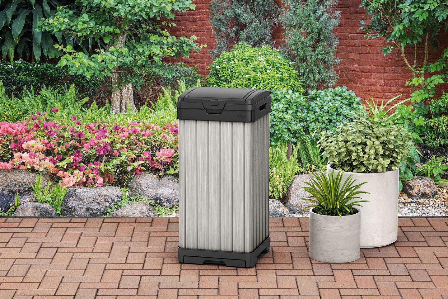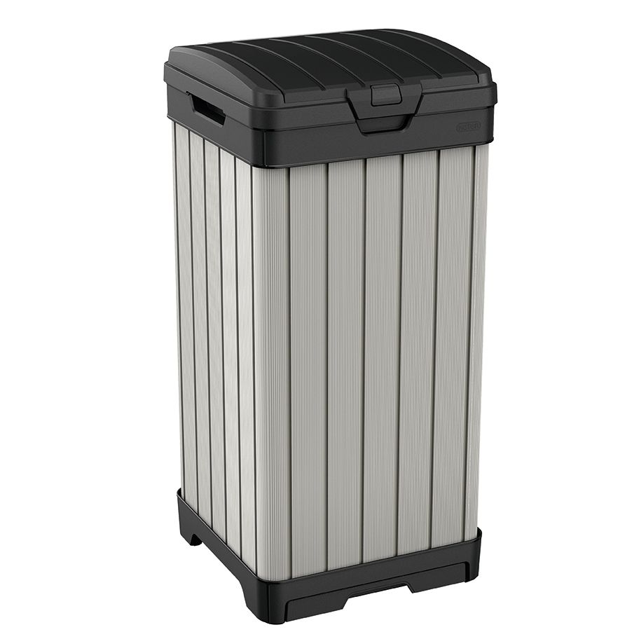 ROCKFORD 125L очень практичный и стильный уличный мусорный бак. Изготовлен из прочного пластика Duotech, устойчив к любым погодным условиям и УФ(не выгорает на солнце). Инновационная двойная крышка позволяет плотно закрыть бак, а специально разработанный выдвижной поддон облегчает его очистку.