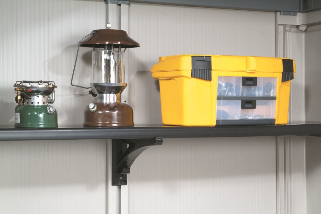 Очень практичный аксессуар для хозяйственного домика Keter Factor. В состав комплекта входят 4 полки, а также 2 вешалки для инструментов и 2 кронштейна для монтажа полок. Базовое дополнение для любого садового домика для инструментов. Подходит для домиков Factor 8x11, 8x6, 6x6.