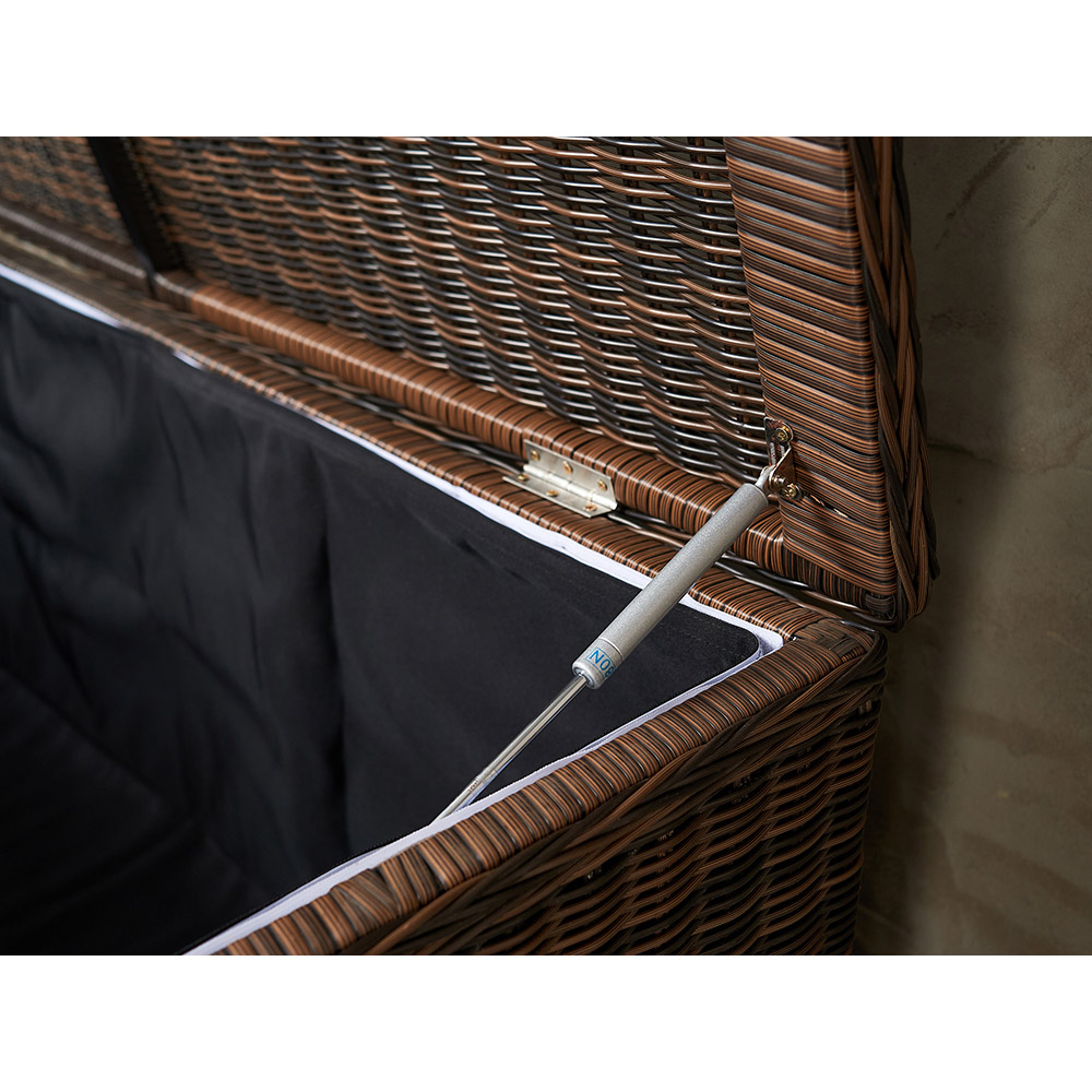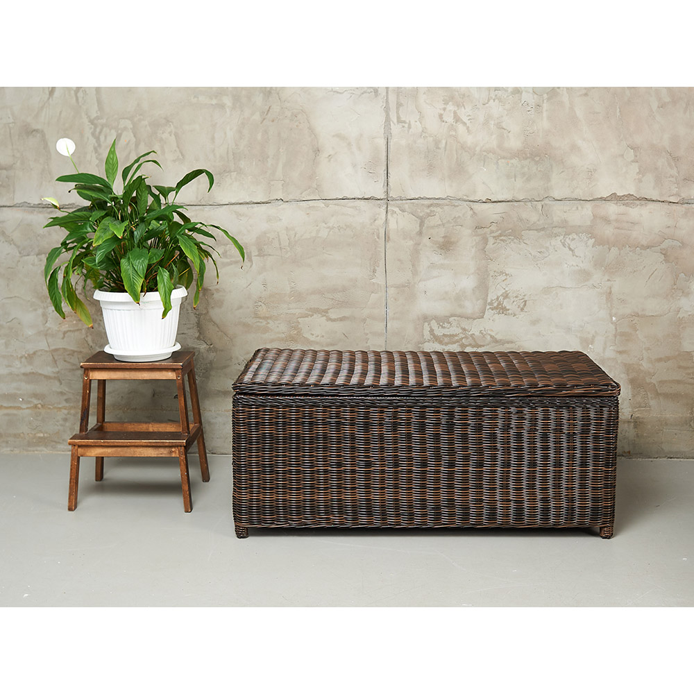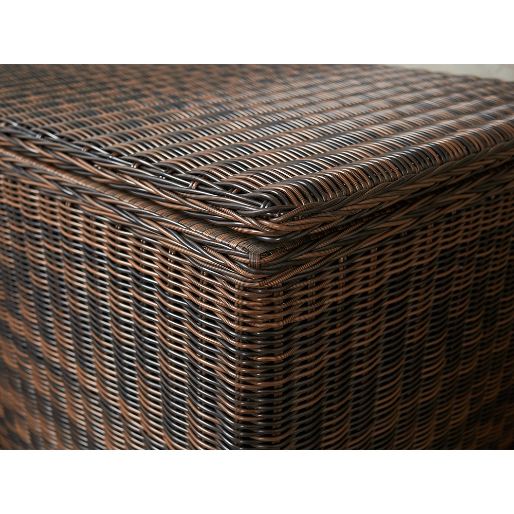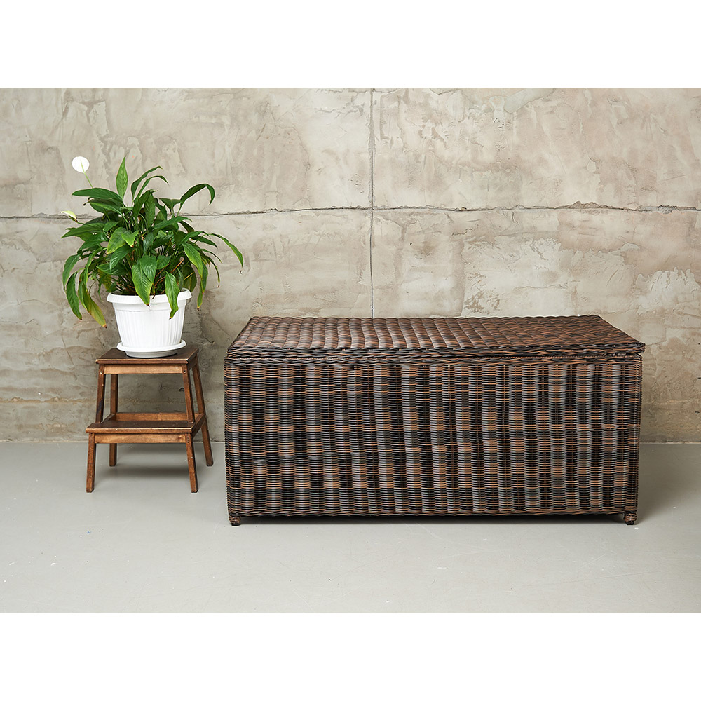 KARL (140 и 120) набор темно-коричневый. Сундуки выполнены из высококачественного круглого искусственного ротанга на алюминиевом каркасе. Ручное плетение. Сундуки очень вместительные, внутри одно отделение. Крышки у сундуков с механизмом газлифт. В сундуках удобно хранить, например, подушки от уличной мебели, постельные принадлежности и даже вещи. Предназначены для террас и веранд загородных домов, могут использоваться как в помещении, так и на улице, в саду. Искусственный ротанг не боится влаги, прямых солнечных лучей, мороза. Не требует особого ухода. Легко моется.