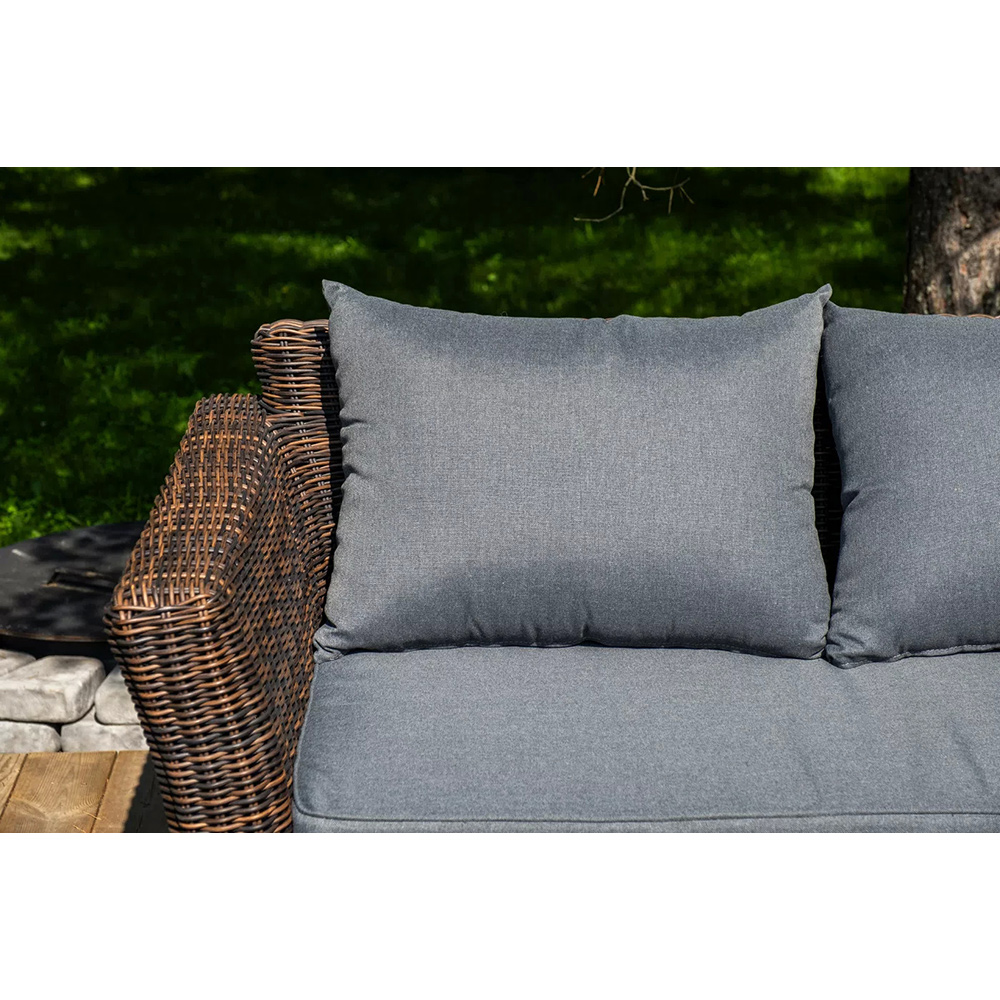 Подушки выполнены из водостойкой полиэфирной ткани для защиты мебели от дождя и солнца