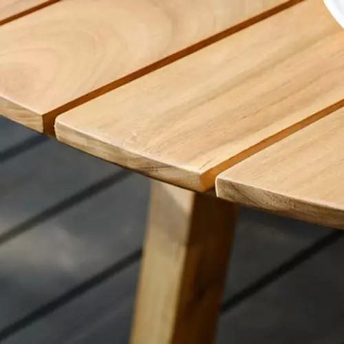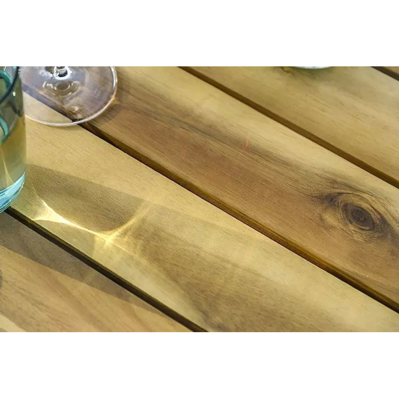 Стол: массив акации, отделка экомаслом под натуральный тик. Анодированная фурнитура из нержавеющей стали.