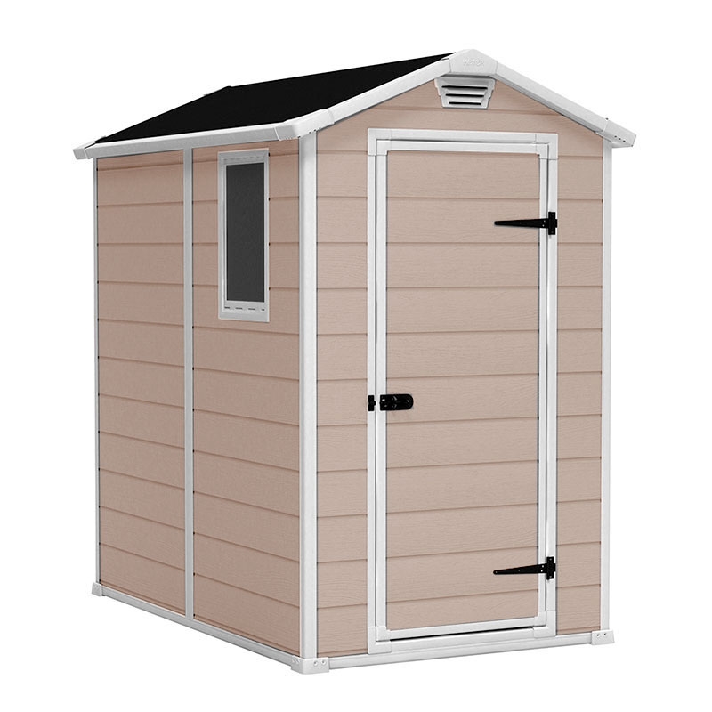 Садовый домик Manor 4x6 будет незаменим всюду там, где необходимо организовать пространство для хранения разных видов предметов и садовых принадлежностей. Гарантией стабильности является высококачественный материал, устойчивый к неблагоприятным погодным условиям, а также двойные стенки и металлические петли, дополнительно усиливающие конструкцию. Встроенная вентиляционная панель обеспечивает циркуляцию воздуха и эффективно защищает от проникновения влаги вовнутрь. Продукт не требует технического обслуживания, не подвержен процессам гниения и ржавчины материала.