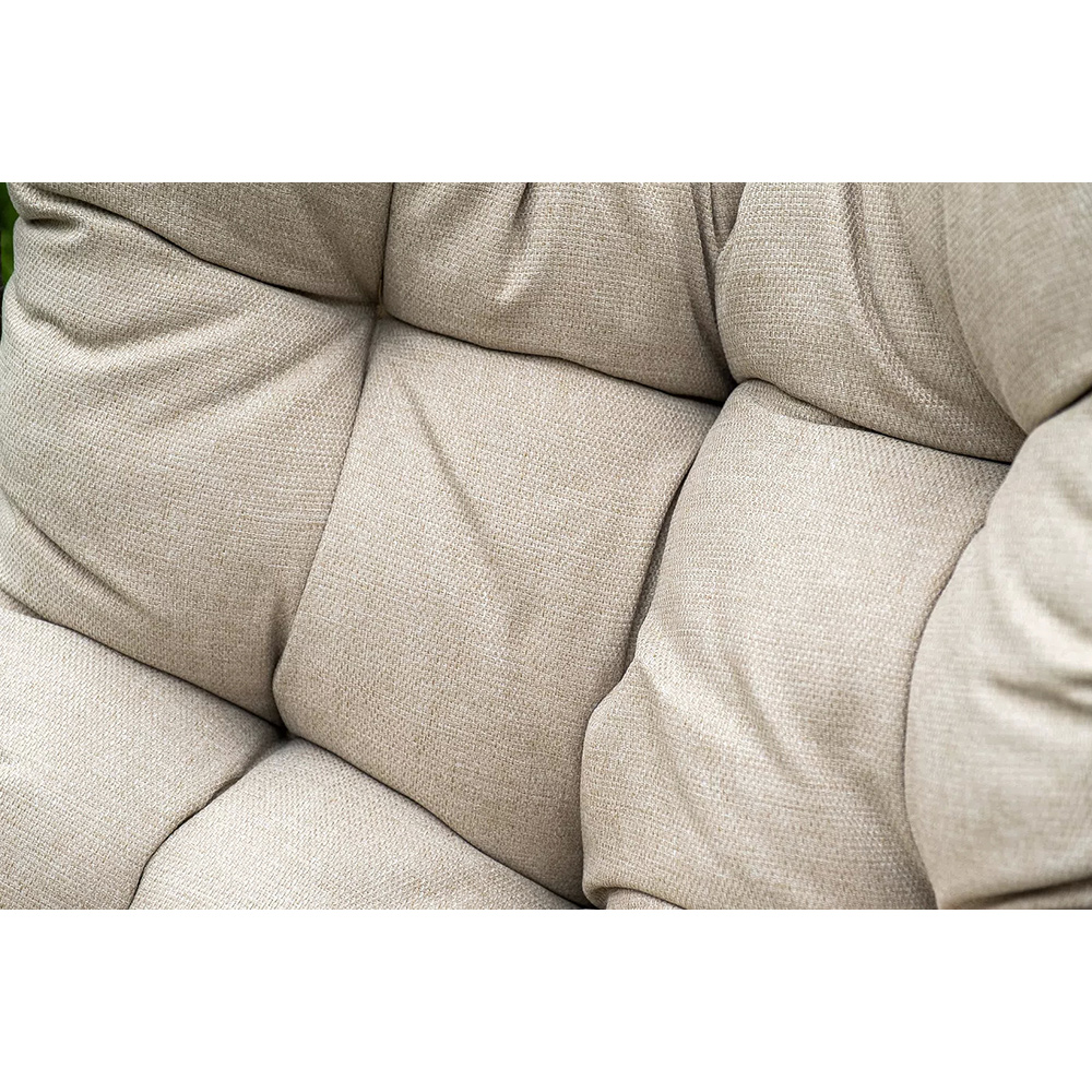 Для удобства сидения на кресле предусмотрена удлиненная подушка бежевого цвета из полиэстера с влагоотталкивающей пропиткой. Чехол – съемный, допускается стирать в стиральной машине с использованием порошка.