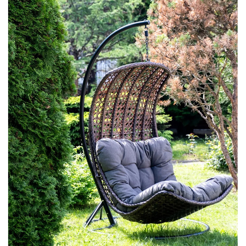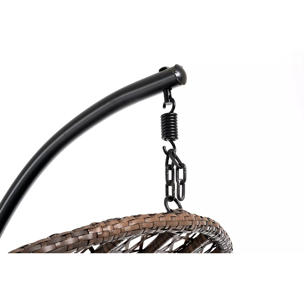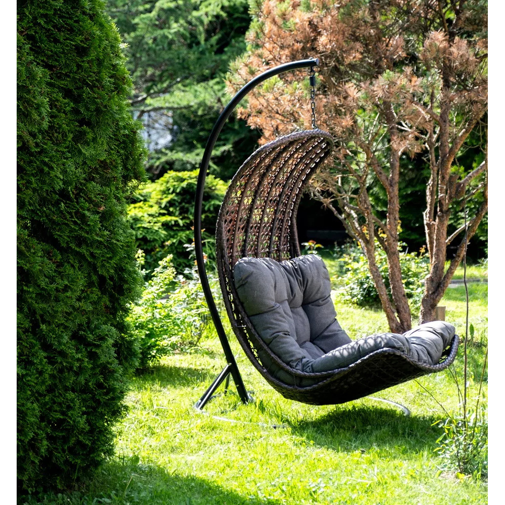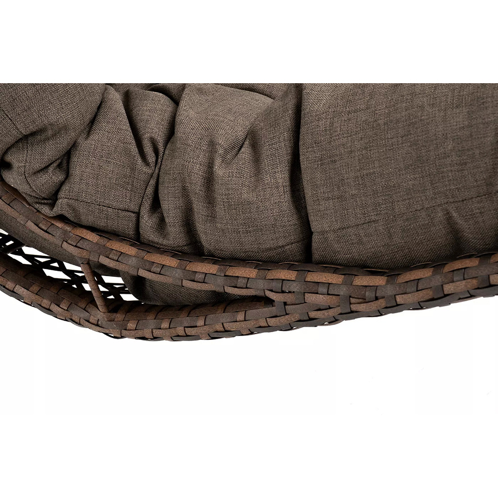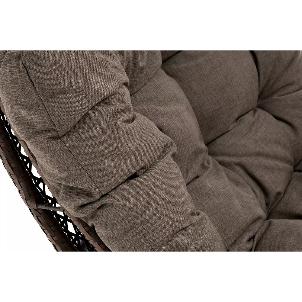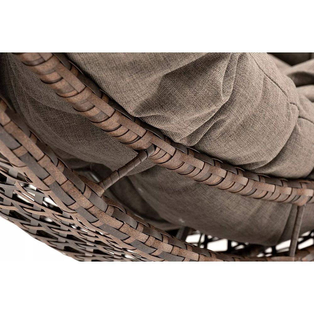 Уютное садовое кресло-кокон «Виши» для организации лаунж-зоны. Основание изготовлено из стали окрашенного порошковой износостойкой краской черного оттенка, вручную оплетенного плоским искусственным ротангом коричневого цвета. Этот материал не боится перепадов температуры, прямых солнечных лучей, дождя и ветра.