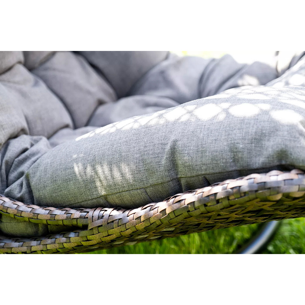 Для удобства сидения на кресле предусмотрена удлиненная подушка серо-коричневого цвета из полиэстера с влагоотталкивающей пропиткой. Чехол – съемный, допускается стирать в стиральной машине с использованием порошка.