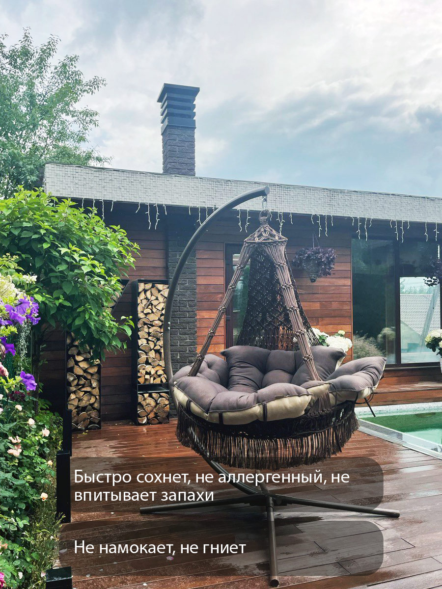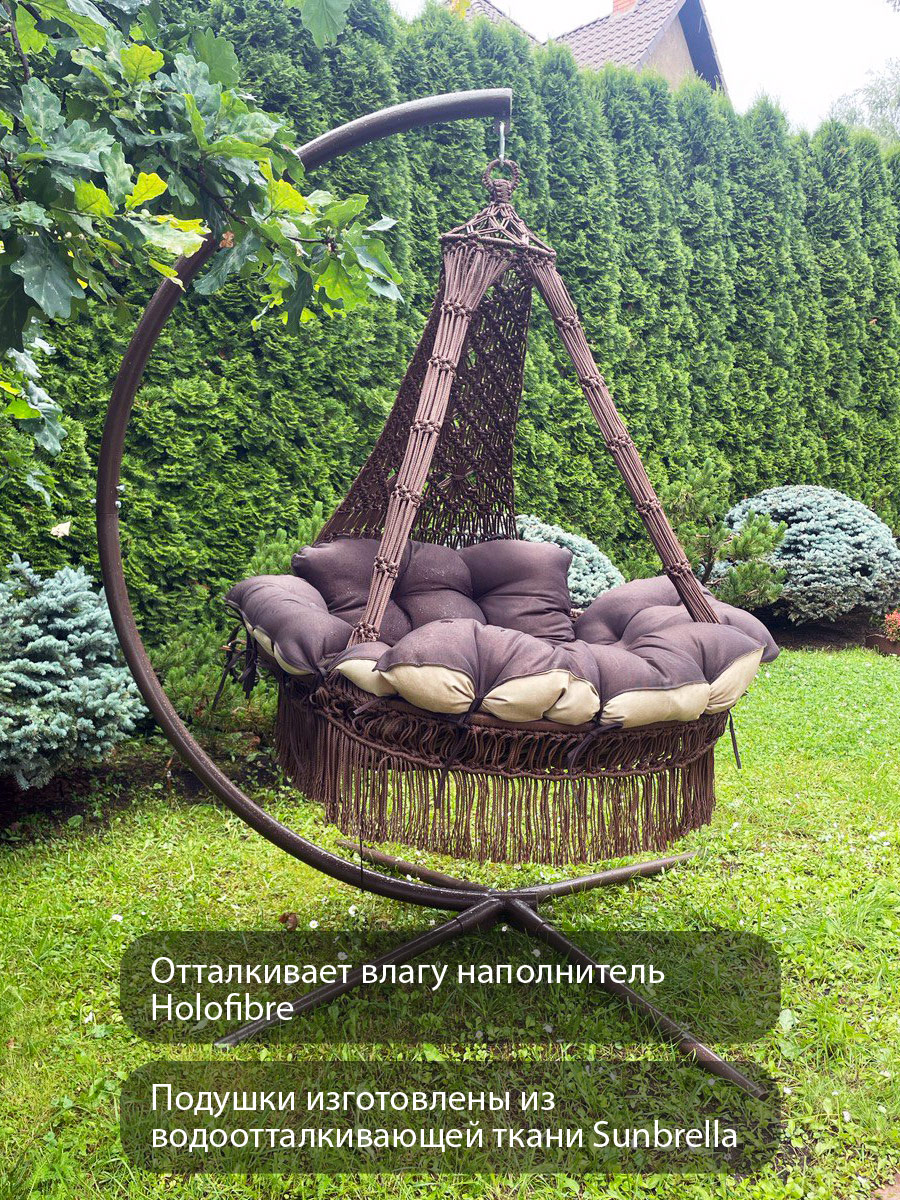 Модная новинка – подвесной гамак-кресло CARTAGENA с невероятно мягкими и комфортными подушками – сплетен вручную из полиамидной нити.