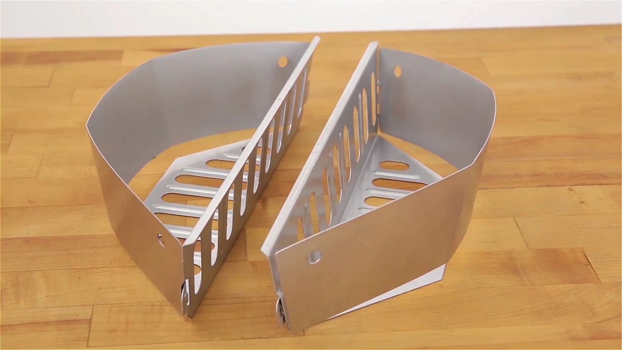 2 прочных лотка-разделителя из оцинкованной стали для косвенного приготовления продуктов на гриле с брикетированным углем.
