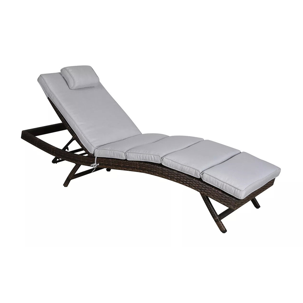 В комплекте прилагается матрас светло-серого цвета из водостойкой ткани. Мебель натуральных расцветок гармонично вписывается на пляже, в саду, на террасе.