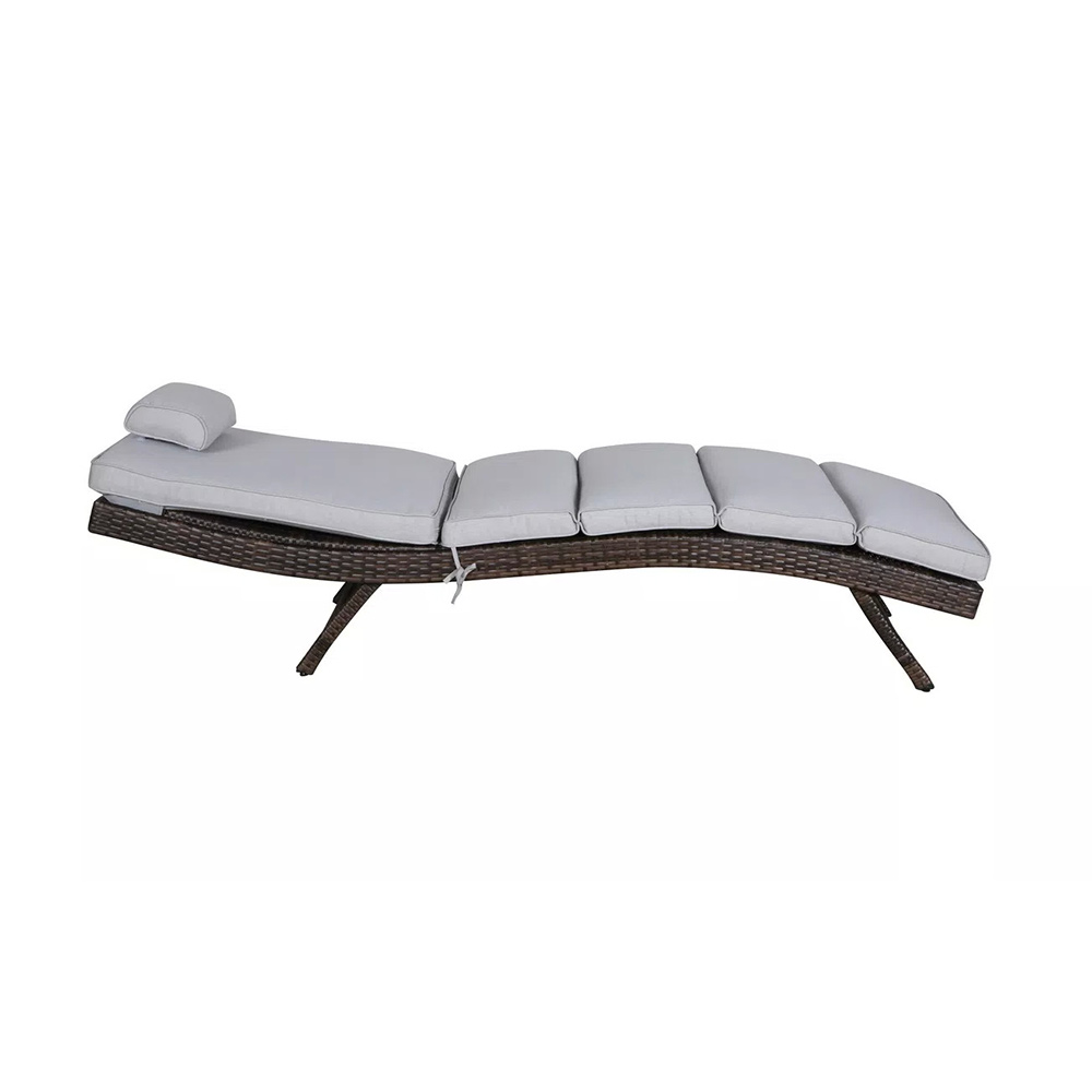 Плетение для лежака выполнено вручную. Повышенной прочности придает ему каркас, сделанный из алюминия. Искусственный ротанг не требует специального ухода.