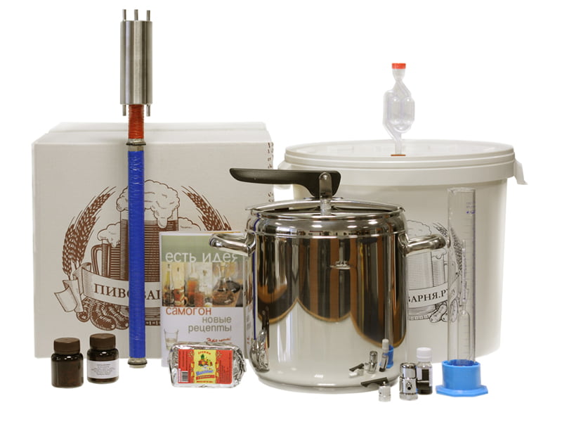 Комплект "Бывалый Проф" — это решение для тех, кто хочет открыть коробку и сразу перейти к производству, не тратя времени на поиск нужного дополнительного оборудования. Ведь все, начиная от емкости для браги с гидрозатвором для выхода лишнего СО2 и заканчивая профессиональными инструментами для измерения крепости получаемого напитка, уже находится в комплекте! Кроме того, в комплект так же входит книга "Самогон: Новые рецепты — это просто!" , которая поэтапно поможет овладеть таким на первый взгляд нехитрым делом как приготовление крепких напитков у себя дома.
