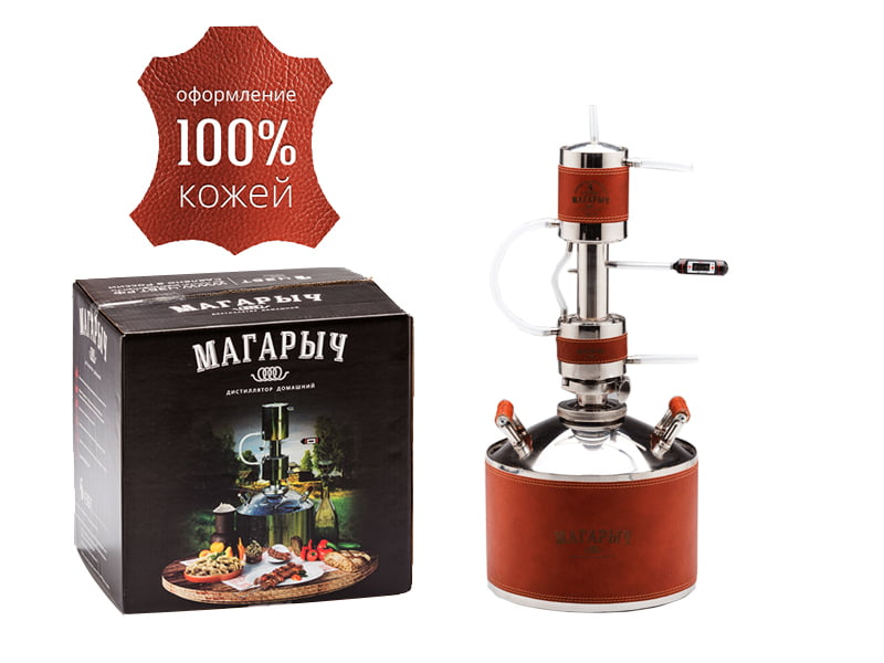 В топовой модели Магарыч Машковского Экспорт 12 л видоизменился перегонный куб, но объем так и остался прежним. Значительно возросла скорость дистилляции, функцию сухопарника выполняет колонна, а холодильник стал прямоточным, так же предусмотрен дополнительный охладитель со змеевиком, который крепится на колонну.