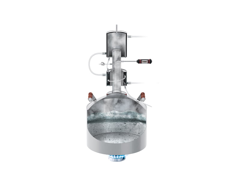 Аппарат получил привлекательный внешний вид и отличные технические характеристики. Производительность в режиме дистилляции доходит до 3,5 л/ч. В режиме ректификации до 1,5 л/ч.