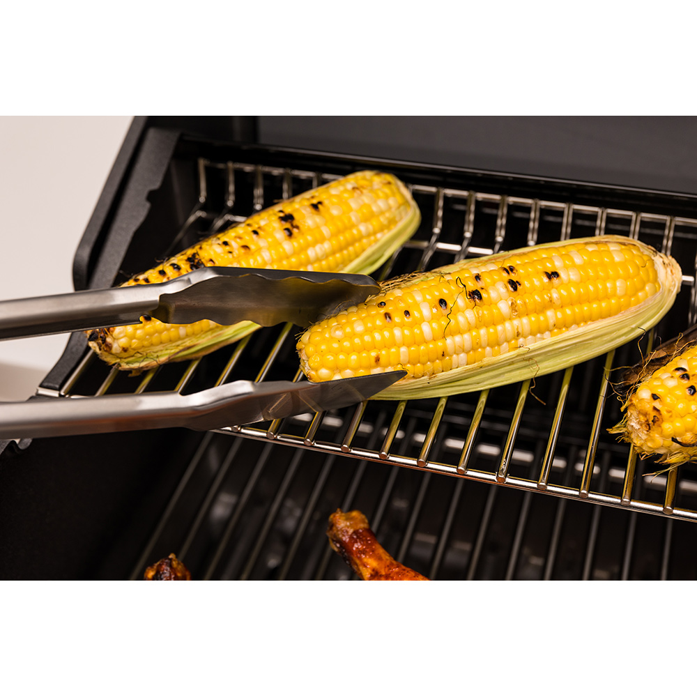 Профессиональные щипцы изготовлены из высокопрочной нержавеющей стали и снабжены крючком. С помощью щипцов вы легко сможете снять с гриля стейки и большие куски мяса, рыбы и птицы.