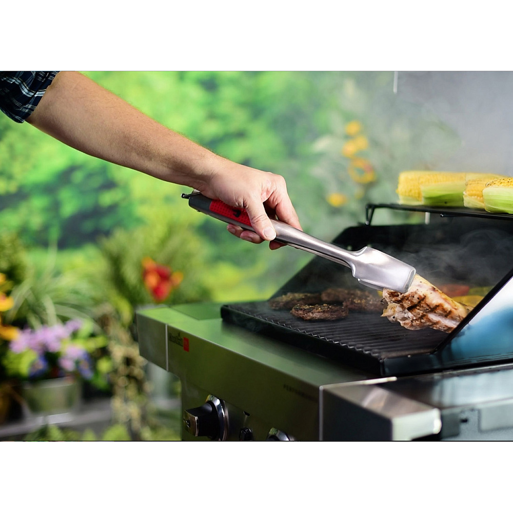 Незаменимый инструмент для каждого грильщика. Благодаря надежному захвату, переворачивать стейки можно в одно движение. Прочная конструкция из нержавеющей стали и удобные прорезиненные ручки. Щипцы можно сложить, потянув за петлю в основании.