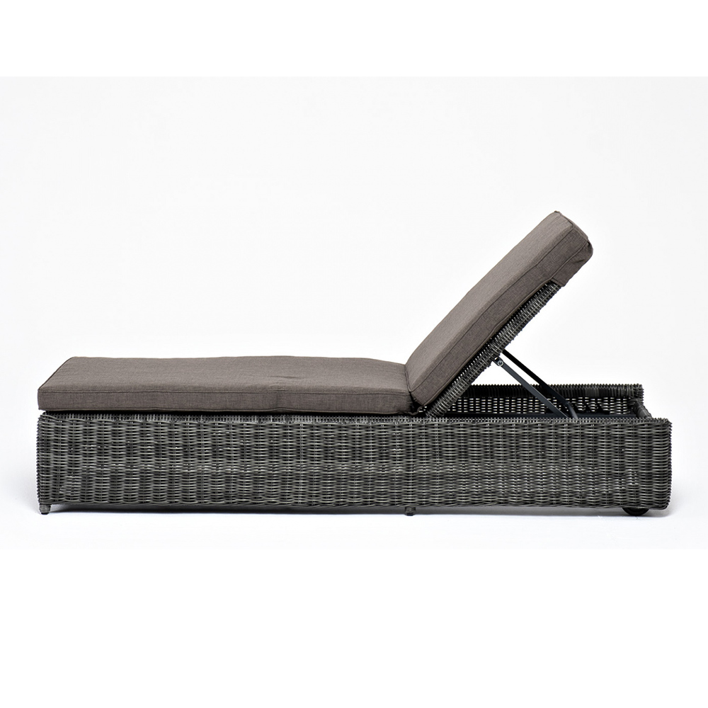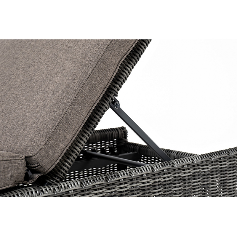 "Рим" плетеный шезлонг из искусственного ротанга графитового оттенка прекрасно дополнит пространство для отдыха на открытом воздухе.