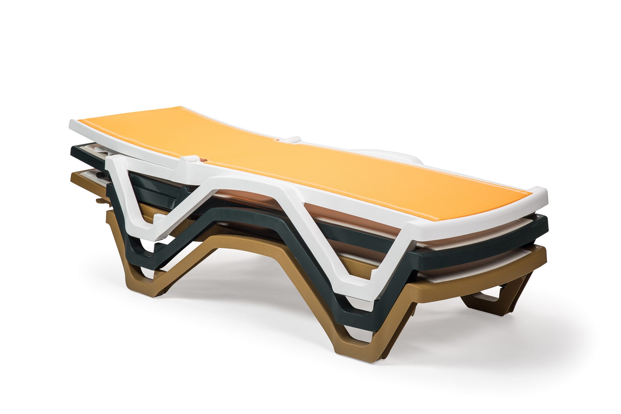 Шезлонг Mare — это новая очаровательная модель от Tilia. Mare состоит из 100% первичного полипропилена, смешанного с воздухопроницаемой и эластичной синтетической тканью. Спинка откидывается в 5 разных положениях. Можно штабелировать до 22 шт.