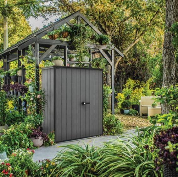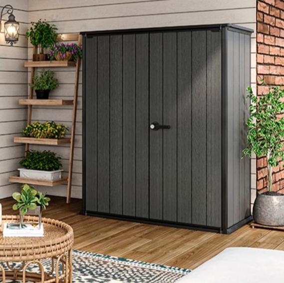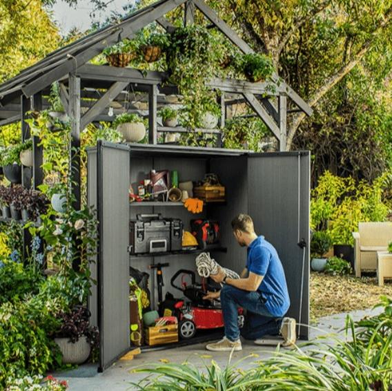 Большой, надежный и не требующий технического обслуживания шкаф Cortina Alto всегда к вашим услугам, когда вам нужно место для хранения. Садовый шкаф Cortina Alto легко собирается с помощью обычных бытовых инструментов. В комплект поставки входят полки для максимального использования и внутренней организации. Cortina Alto запирается на замок, что обеспечивает вам дополнительное спокойствие.