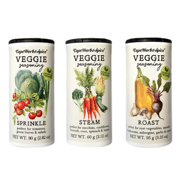 Это инновационное и вкусное трио тщательно сбалансированных вегетарианских приправ гарантирует потрясающий вкус каждого блюда! Используйте их для заправки салатов, жаркого или стирола-фрвй, а также добавляйте к вегетарианскому картофелю фри, запеканию в духовке, фриттатам, запеканкам и, конечно же, к вашей любимой тушеной зелени.