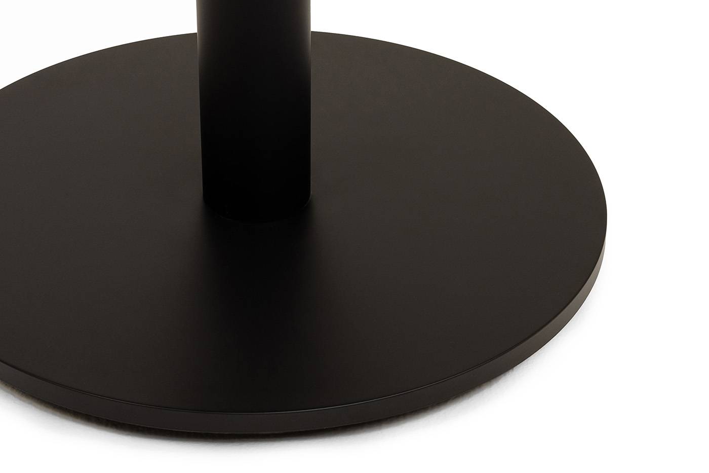Подстолье стальное черного цвета, с широким основанием, которое обеспечивает устойчивость конструкции.