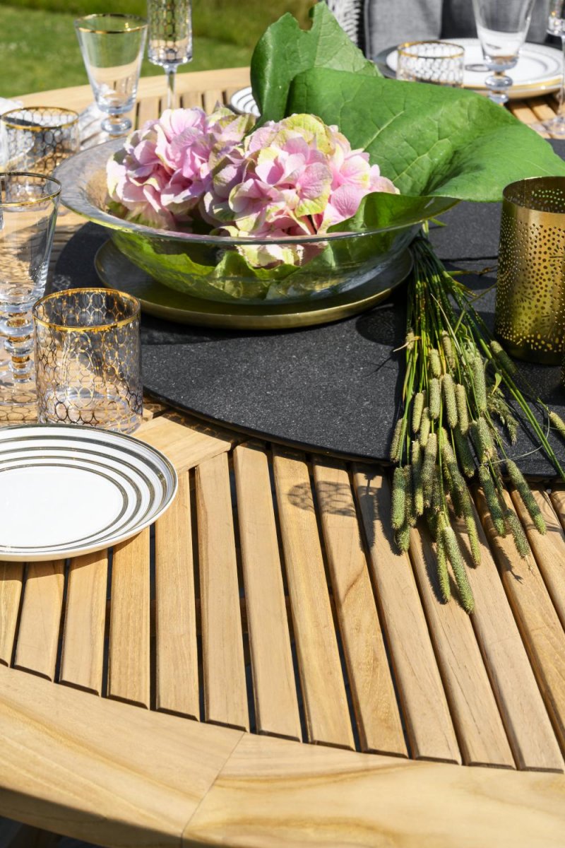 Circus – это стол из тикового дерева, представленный в двух размерах. Роскошная модель обладает красивым медовым блеском и сглаженной привлекательностью. Его отличительной чертой являются прочность и универсальность, а также гранитный сервировочный поднос, который обеспечивает удобную подачу напитков и еды. Порода дерева мало впитывает влагу, а со временем стареет и приобретет серебристо-серую патину. Изделие отлично подойдет для обустройства обеденных зон на открытом воздухе.