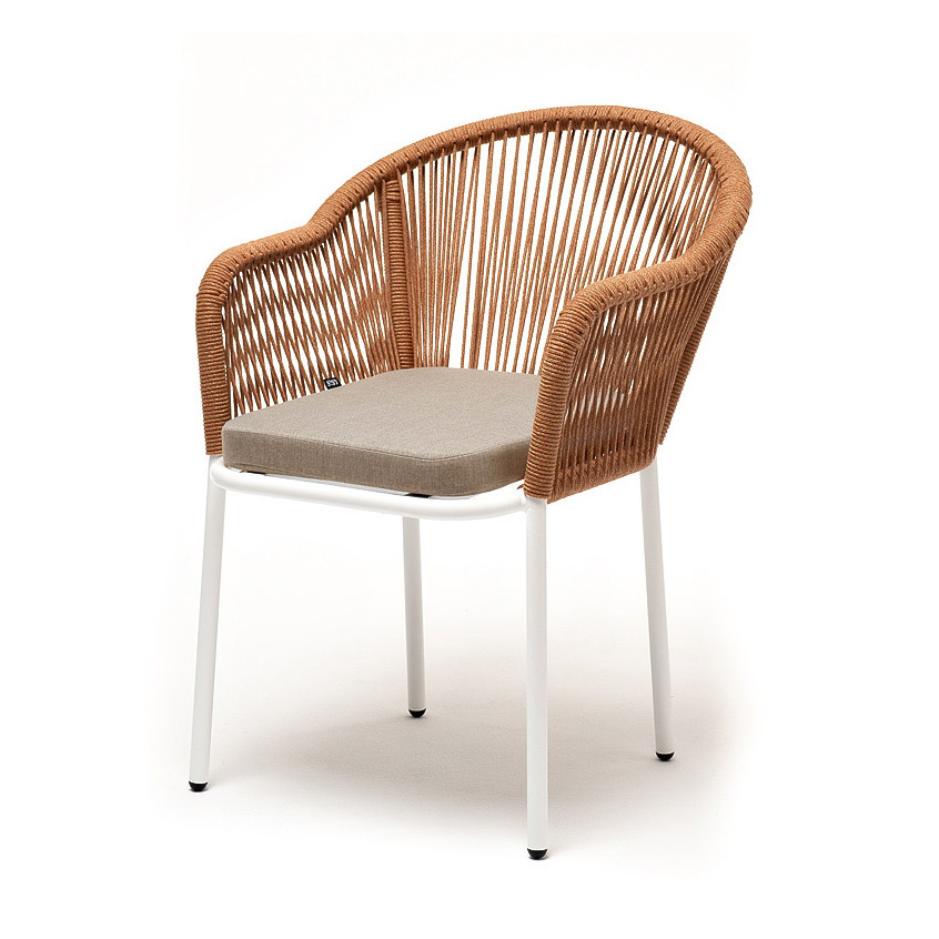 Cтулья «Лион» из роупа – это идеальное решение для создания уютной атмосферы на террасе, в саду или на открытом балконе.Стильный дизайн в сочетании с высококачественными материалами делают эти стулья непревзойденными.Алюминиевый каркас гарантирует прочность и надежность, а плетение из эластичных лент высокопрочных полиэфирных волокон создает удобное и уютное сидение. Цвет оплетки - оранжевый меланж.Подушка в комплекте со стулом выполнена из полиэстера 100% плотностью 300гр/м2 с влагоотталкивающей пропиткой. Это надежный и прочный материал, который легко очищается и устойчив к неблагоприятным погодным условиям.