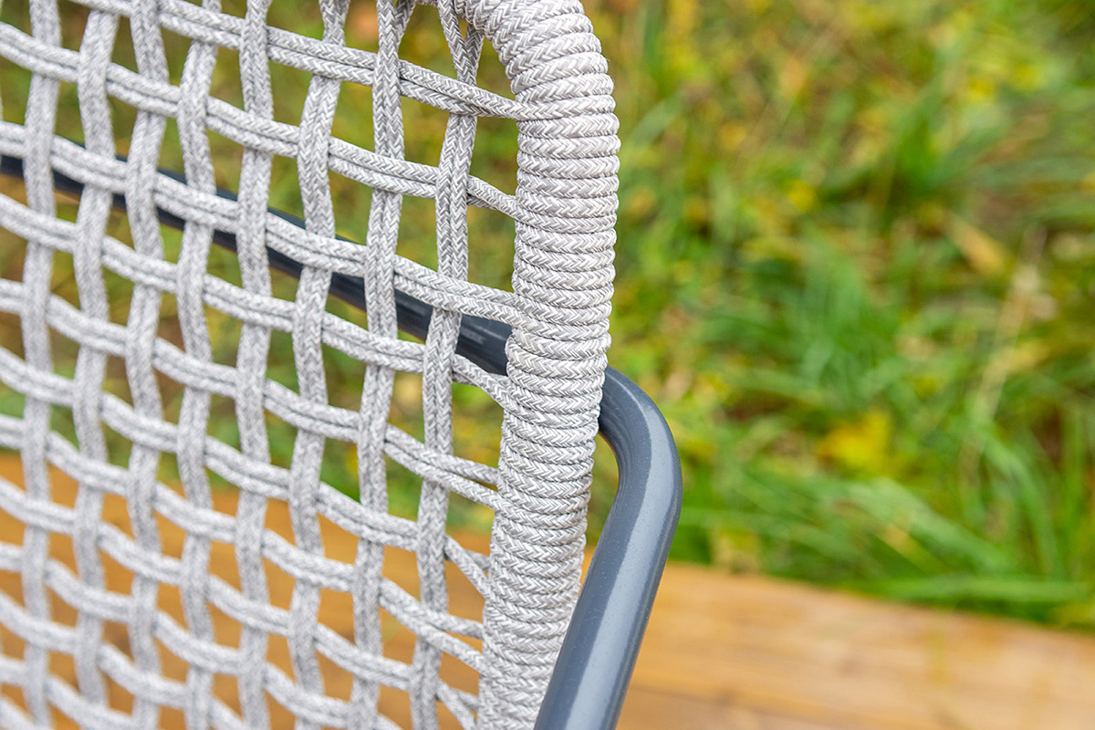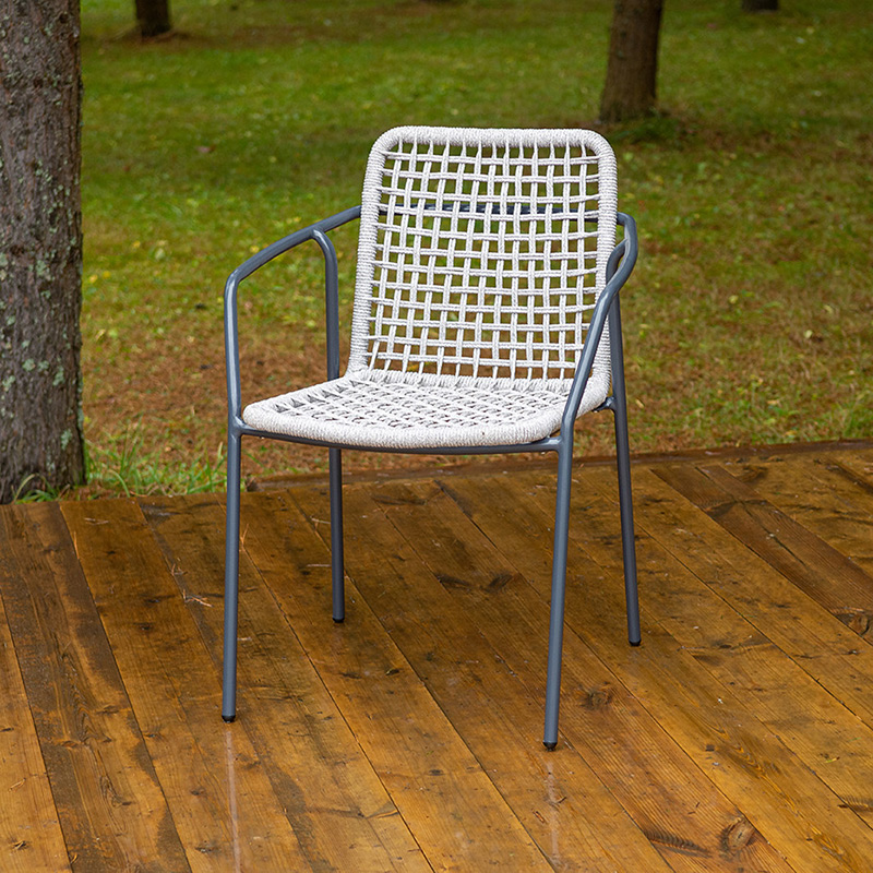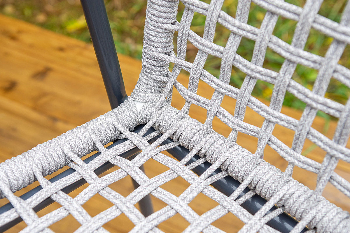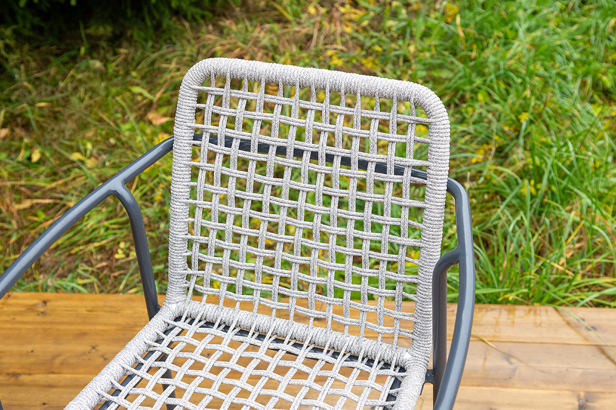 Стул «Тунис» — плетеная модель из роупа (полиэфирной веревки) с алюминиевым каркасом темно‑серого цвета (RAL7024). Компактные размеры позволяют удобно разместить стул как в небольшом кафе, так и на домашней террасе или в саду. Легкий и прочный каркас обеспечивает устойчивость конструкции, а плетение из роупа придает изделию стильный, современный вид и гарантирует комфорт при использовании.