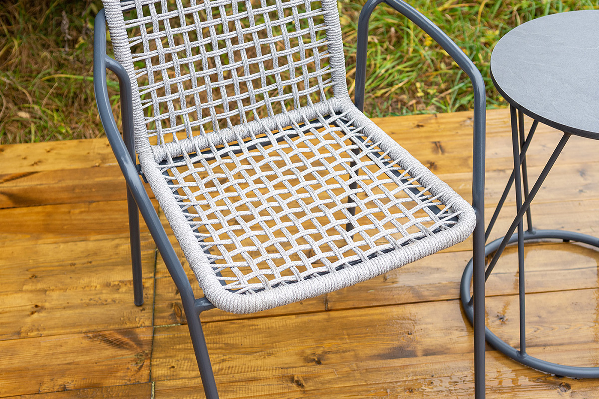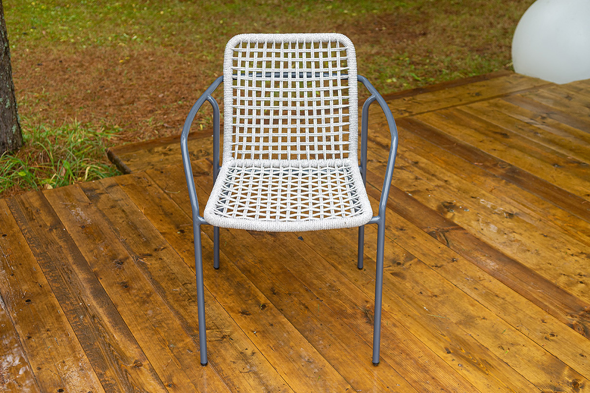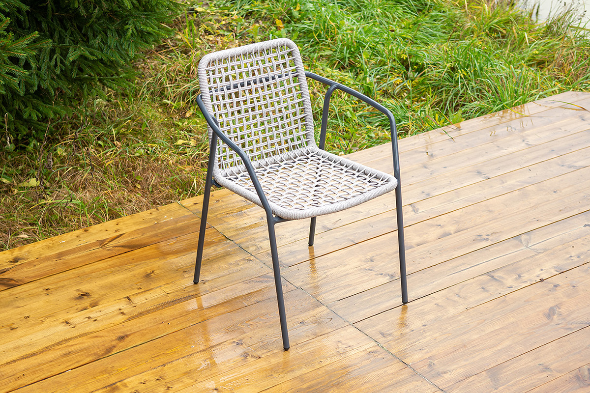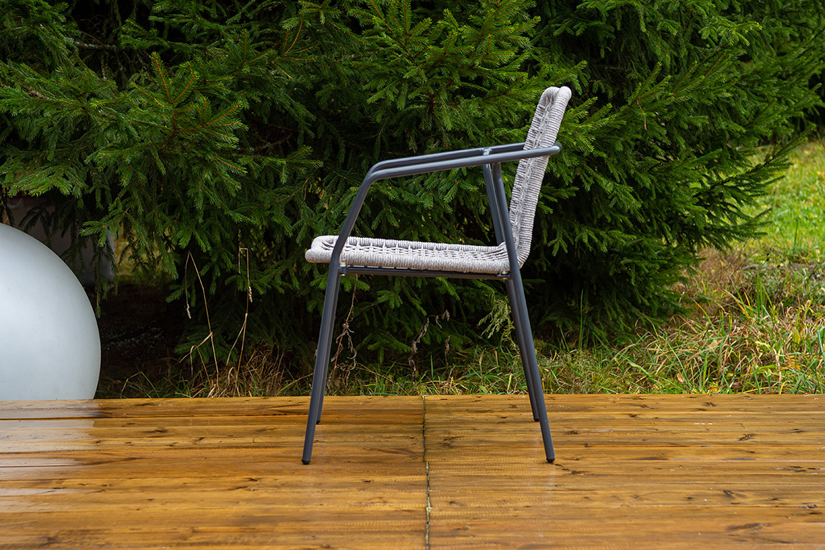 Стул «Тунис» — плетеная модель из роупа (полиэфирной веревки) с алюминиевым каркасом темно‑серого цвета (RAL7024). Компактные размеры позволяют удобно разместить стул как в небольшом кафе, так и на домашней террасе или в саду. Легкий и прочный каркас обеспечивает устойчивость конструкции, а плетение из роупа придает изделию стильный, современный вид и гарантирует комфорт при использовании.