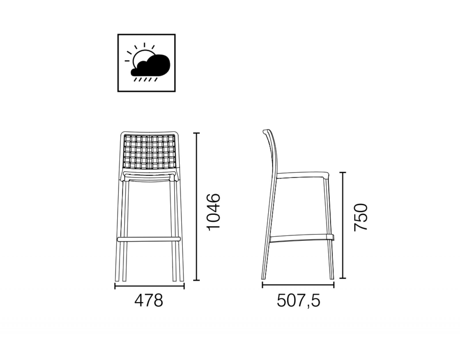 • Барный стул выполнен из стеклопластика (полипропилен, усиленный стекловолокном), устойчивого к УФ-излучениям.