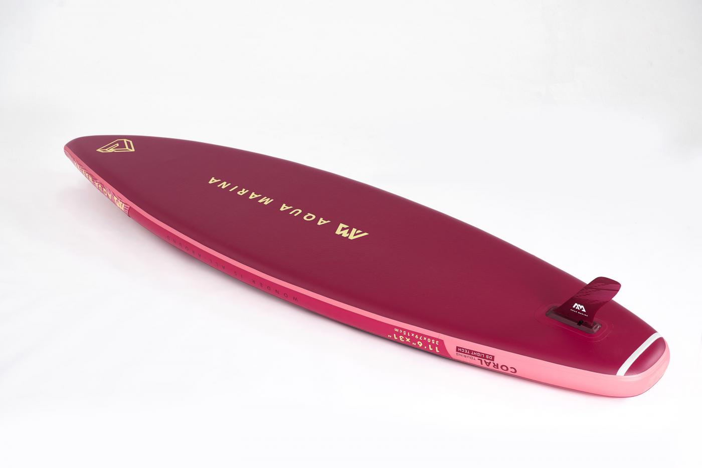 Модель CORAL TOURING 11`6 изготовлена по технологии Drop Stitch Light и весит всего 9,6 кг, при этом имеет грузоподъемность до 130 кг. Новый дизайн рюкзака делает доску удобной для путешествий и транспортировки, а также позволяет аккуратно упаковать все необходимые аксессуары до следующего чудесного пункта назначения.