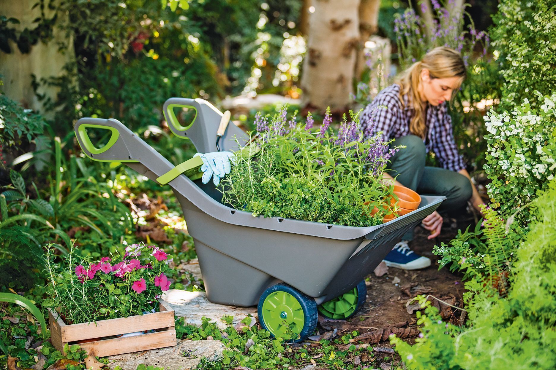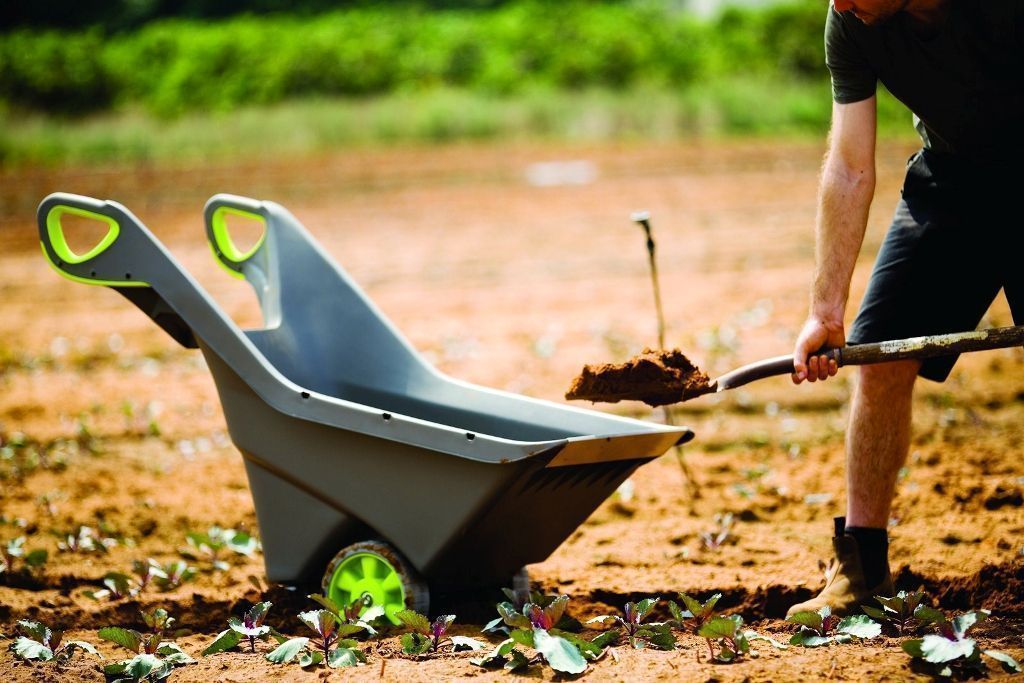 Садовую тележку можно использовать для множества разных целей: для сбора урожая или компоста, перевозки стройматериалов или гибких ведер с водой.
