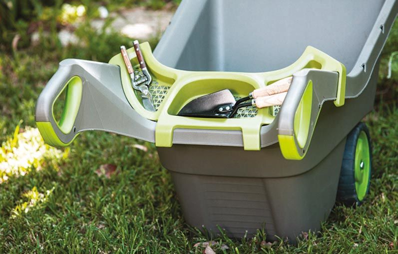 Садовая тележка Риалбарроу пришла на замену железным тачкам, к которым все привыкли. Удобное расположение ручек и колес позволяет перевозить в тележке тяжелые материалы, а правильная высота облегчает загрузку. Передний край тачки Realbarrow обработан металлическим кантом для дополнительной прочности. Садовая тележка KETER выполнена из прочного пластика, поэтому она легкая, но при этом выдерживает большой вес. Кроме того она не выцветает не солнце и не ржавеет.