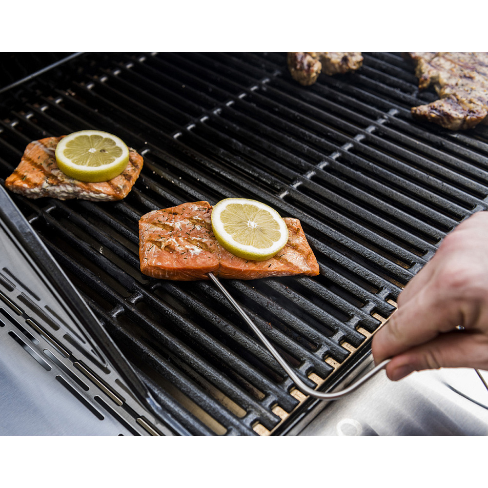 15 программ приготовления. Выбор 5 видов мяса. Одновременный анализ температуры с 5 точек. Легок в использовании. Подходит под любой тип гриля.