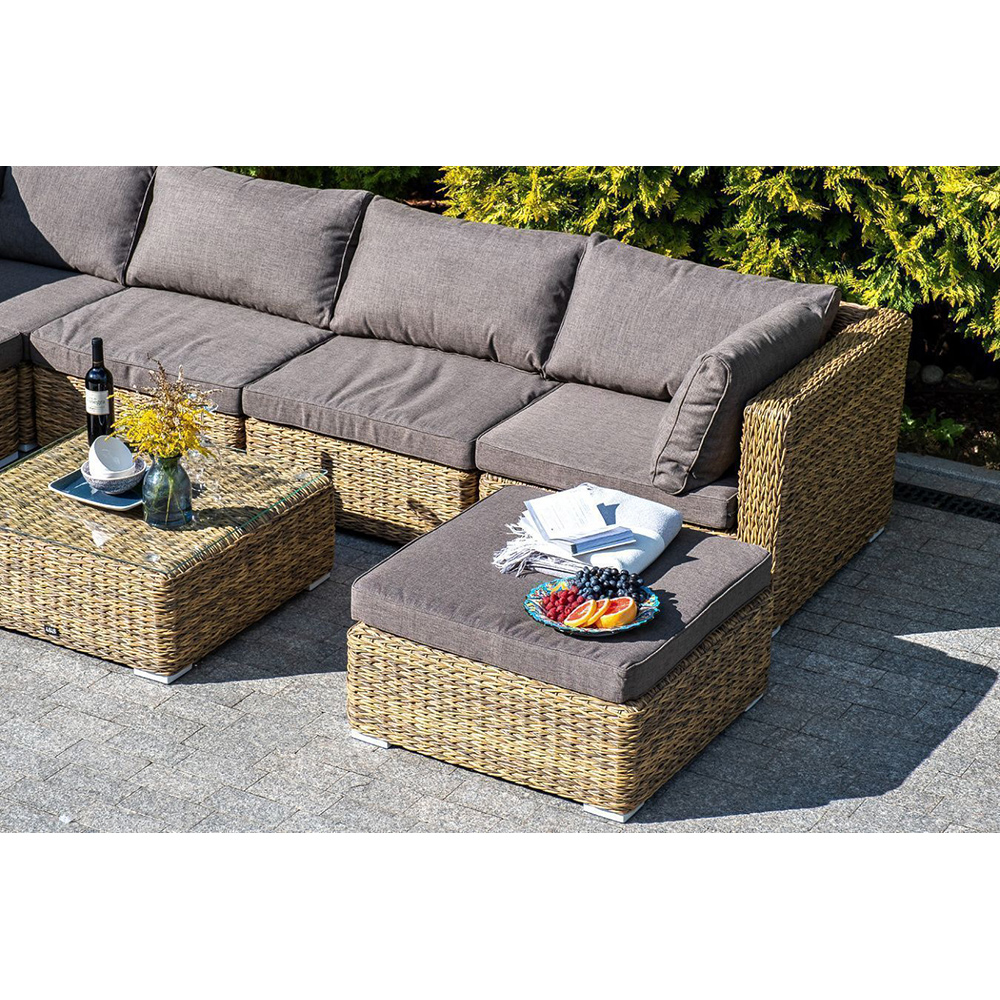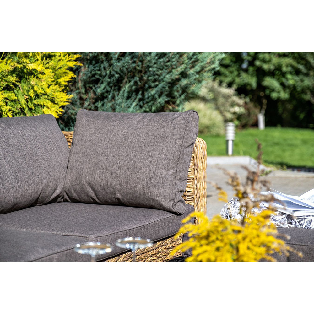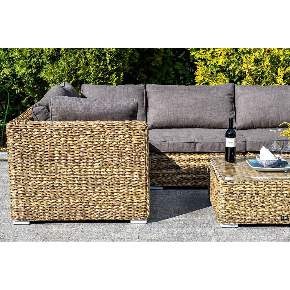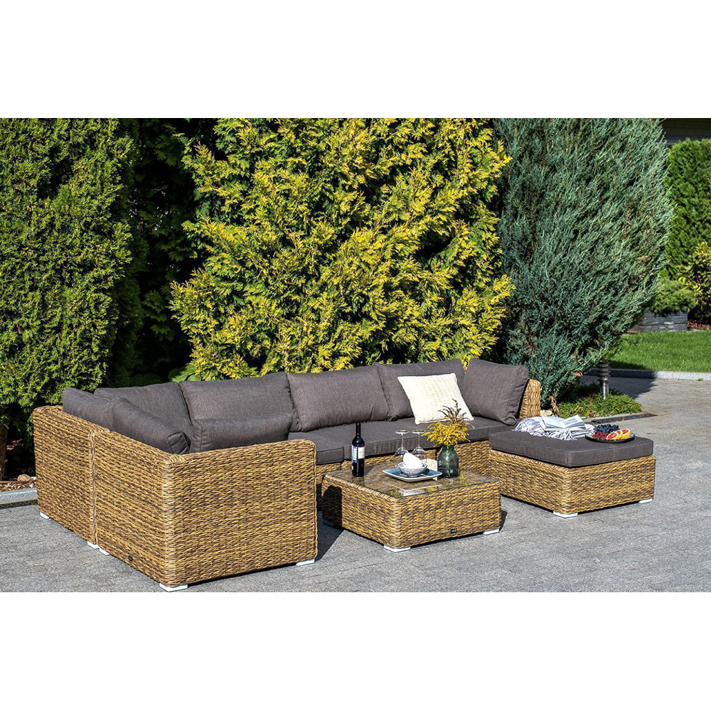 "Лунго" угловой модуль из искусственного ротанга вида "гиацинт", вляется неотъемлемой частью лаунж-зоны. В своем основании имеет каркас из алюминия, который вручную оплетен ротангом соломенного цвета.В комплектации предусмотрены подушки из полиэстера, пропитанные влагоотталкивающим составом.Габариты изделия: 850х850х650 мм