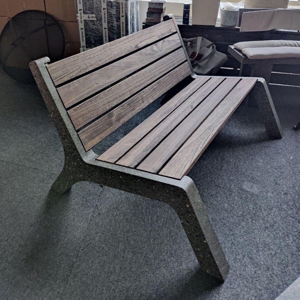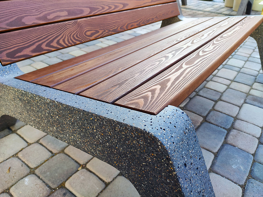 Специально для оформления костровых зон, были разработаны в единой стилистике уличная мебель, которая не боится дождя, снега и перемены погодных условий. Материал изготовления: Древесина-лиственница. Основание – декоративный фибробетон.