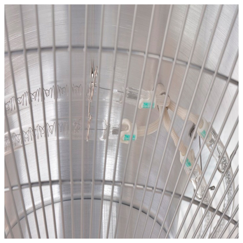 Для дополнительной безопасности лампа защищена металлической решеткой, которая предотвращает случайные прикосновения и попадание посторонних предметов.