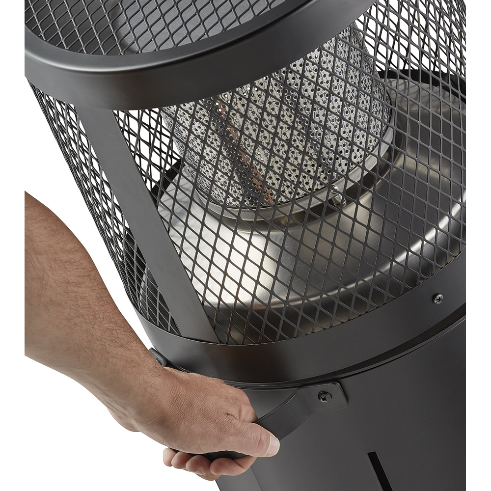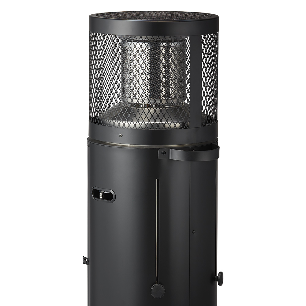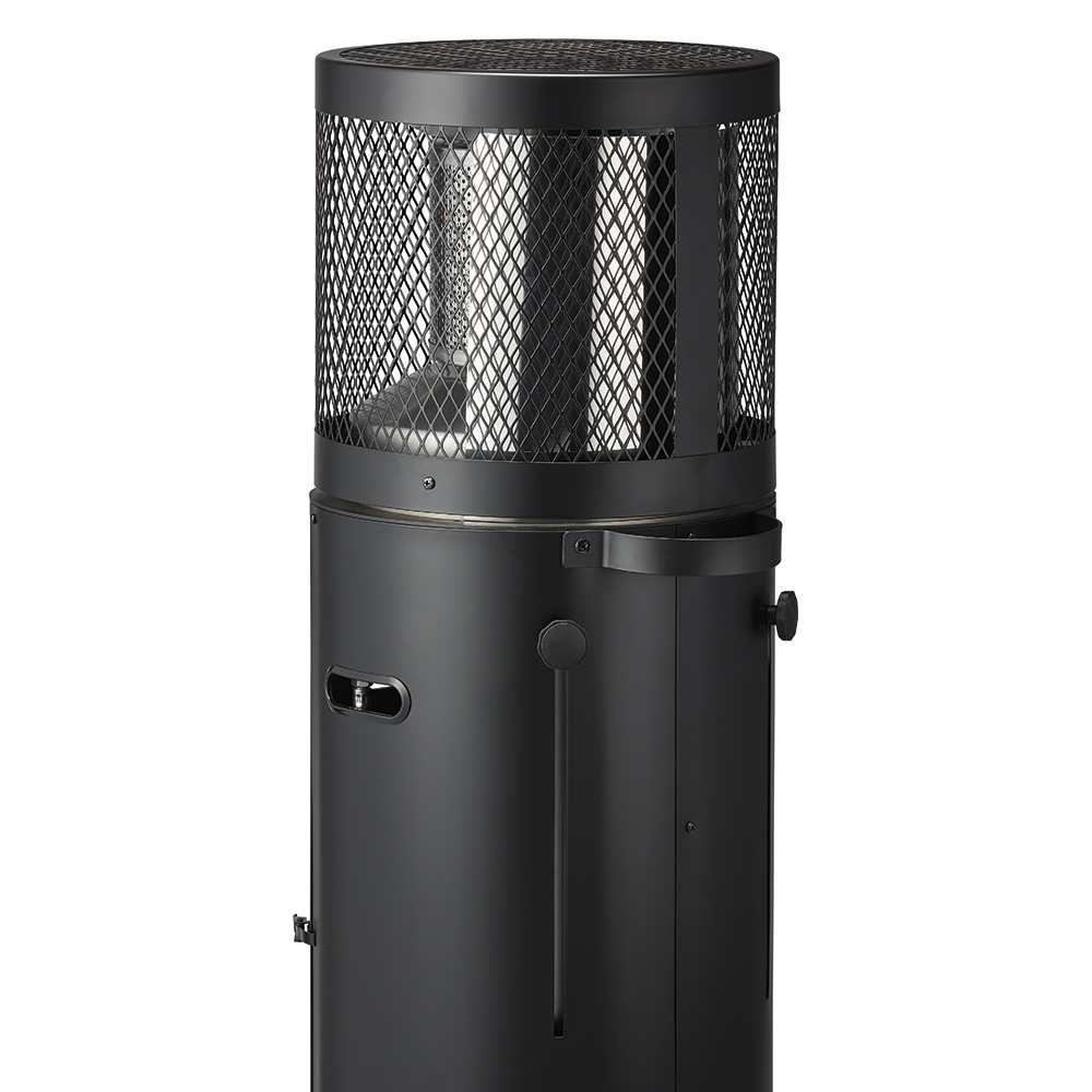 Корпус и газовая горелка выполнены из нержавеющей стали, что гарантирует долговечность, устойчивость к коррозии и придаёт устройству современный внешний вид. Прочное устойчивое основание с порошковым покрытием дополнено встроенными роликами, что позволяет легко перемещать обогреватель при необходимости. Конструкция оснащена удобной дверцей для установки газового баллона с надёжным натяжным замком, а все элементы управления спрятаны внутри корпуса для защиты от внешних воздействий.
