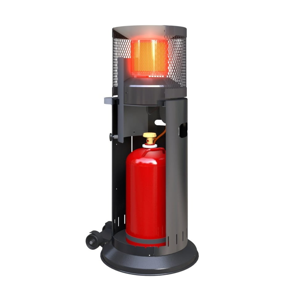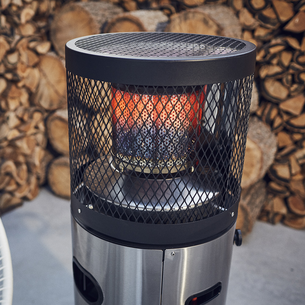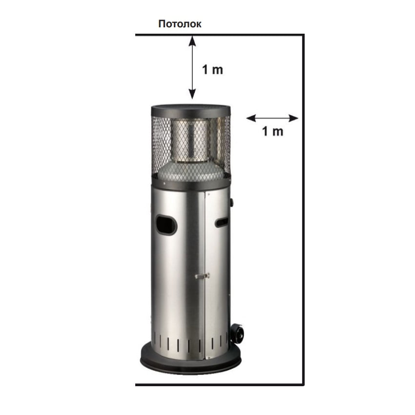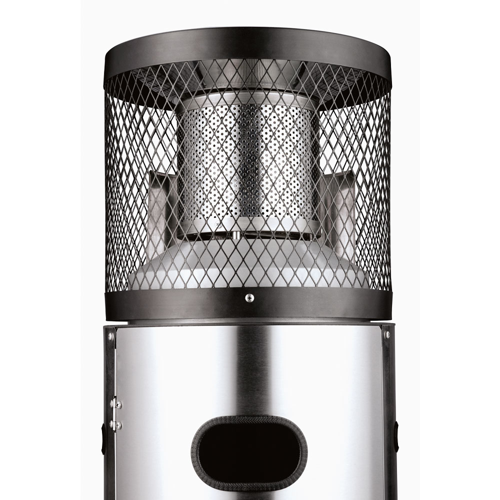 Корпус и газовая горелка выполнены из нержавеющей стали, что гарантирует долговечность, устойчивость к коррозии и придаёт устройству современный внешний вид. Прочное устойчивое основание с порошковым покрытием дополнено встроенными роликами, что позволяет легко перемещать обогреватель при необходимости. Конструкция оснащена удобной дверцей для установки газового баллона с надёжным натяжным замком, а все элементы управления спрятаны внутри корпуса для защиты от внешних воздействий.