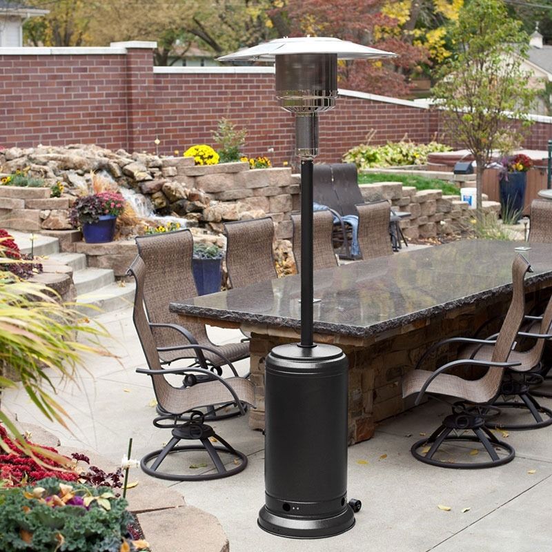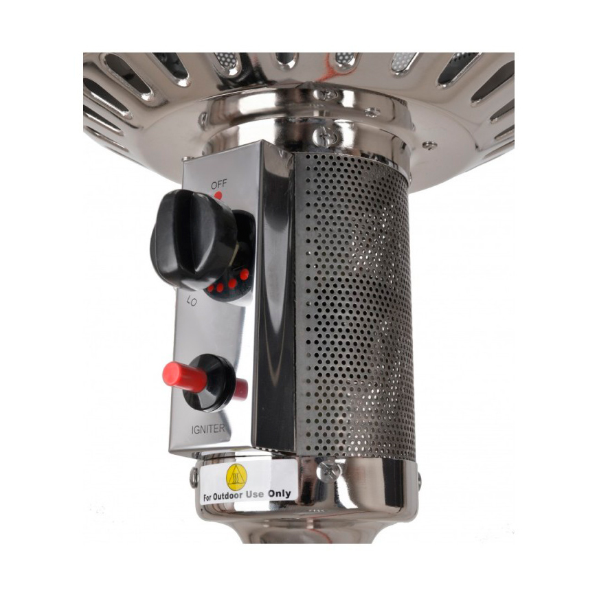 Устройство устанавливается в патио, беседках, на террасах или прямо под открытым небом. Пьезоподжиг включается нажатием кнопки, и уже через пару минут обогреватель прогревает мебель, которая начинает аккумулировать и передавать тепло.