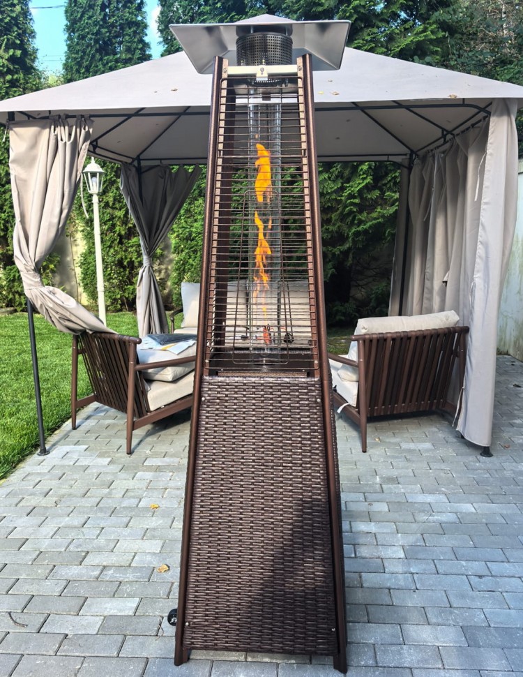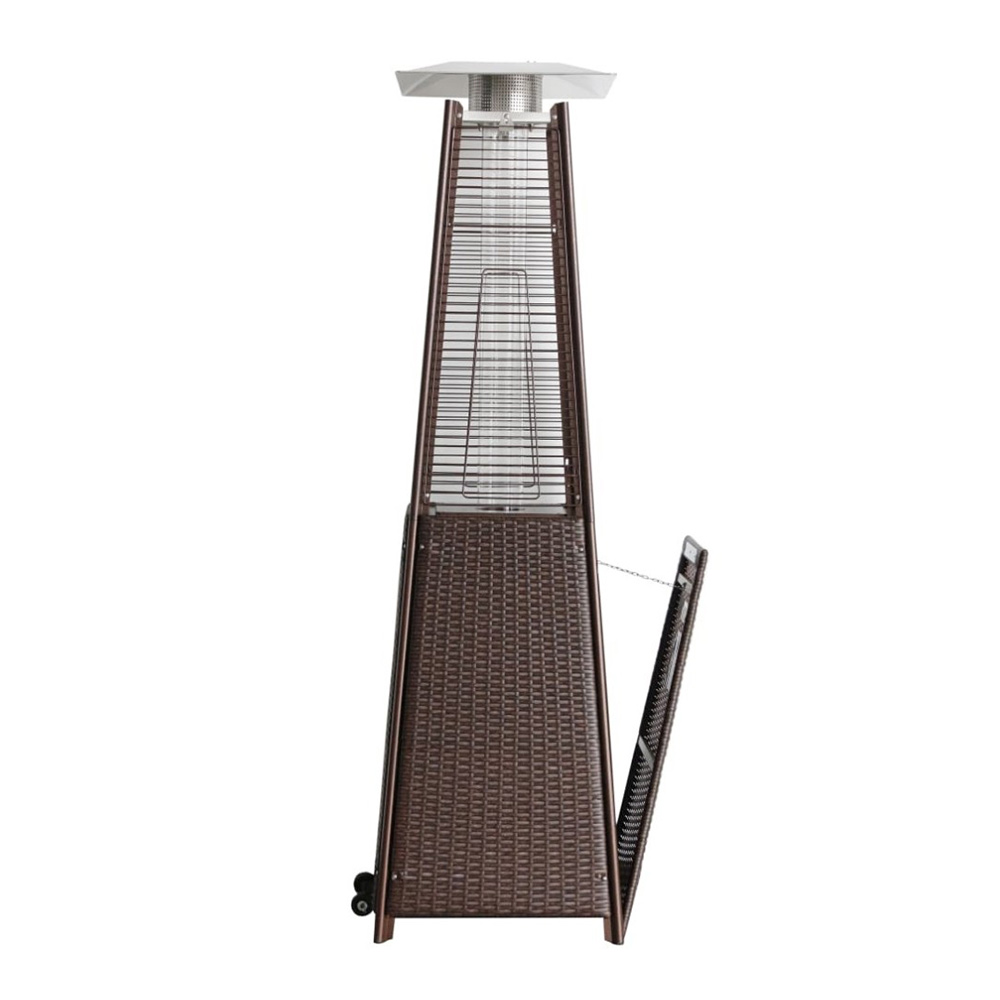 Уличный газовый обогреватель WWT 13I ROTANG Back mini 1.8 m разработан специально для помещений с низкими потолками и имеет высоту всего 1,80 м. Он идеально подходит для обогрева уличных кафе, открытых площадок, веранд, а также может использоваться в загородных домах или на даче. Выполненный полностью в коричневом цвете и имеющий форму пирамиды, этот обогреватель выглядит привлекательно и гармонично сочетается с мебелью из ротанга. В вечернее время он не только согревает, но и создает особую, романтическую атмосферу благодаря мягкому свечению пламени. Пирамидальный корпус устройства обеспечивает эффективное повышение температуры воздуха в радиусе около двух метров вокруг обогревателя, что делает его особенно удобным для локального обогрева.