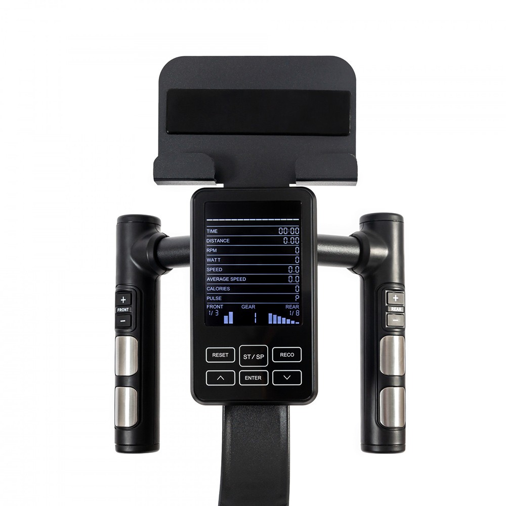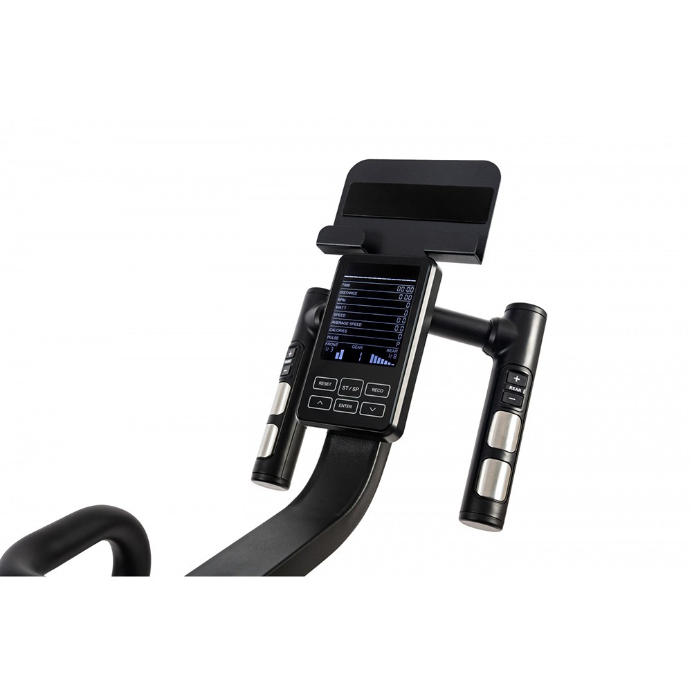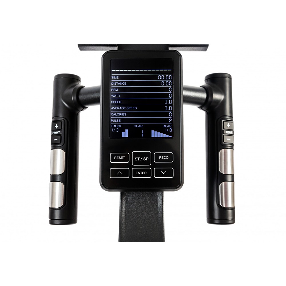 Показатели дисплеяВремя, дистанция, калории, скорость, передача, RMP об/мин, уровень нагрузки в Вт, BodyFat, Recovery