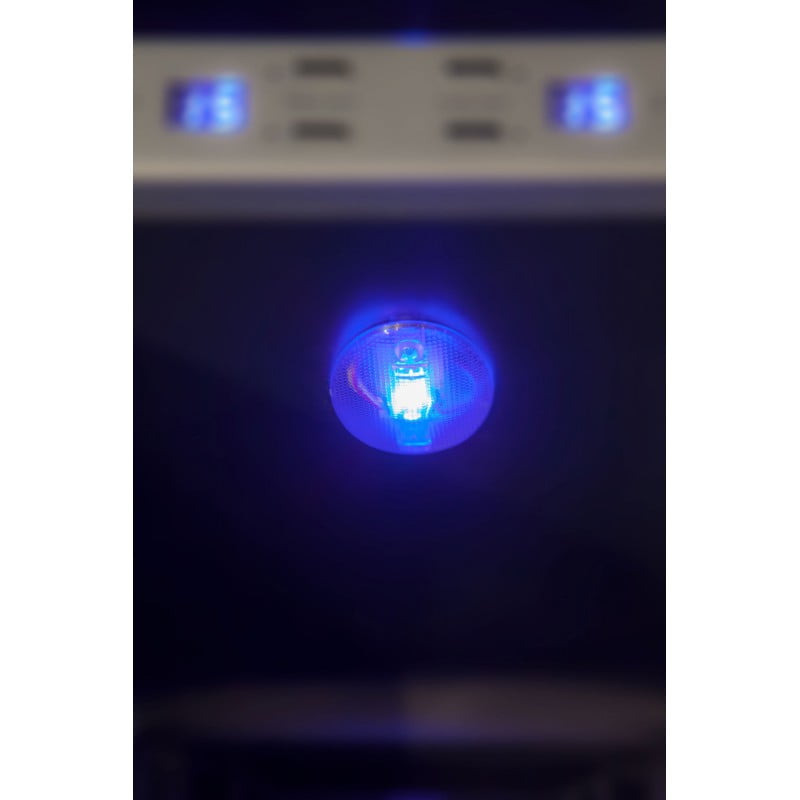 В каждой из зон можно установить температуру в диапазоне от +7 до +18 ˚С, поэтому в шкафе можно хранить несколько видов вина одновременно. Вместимость винного холодильника составляет 12 бутылок типа Бордо емкостью 0,75 л.