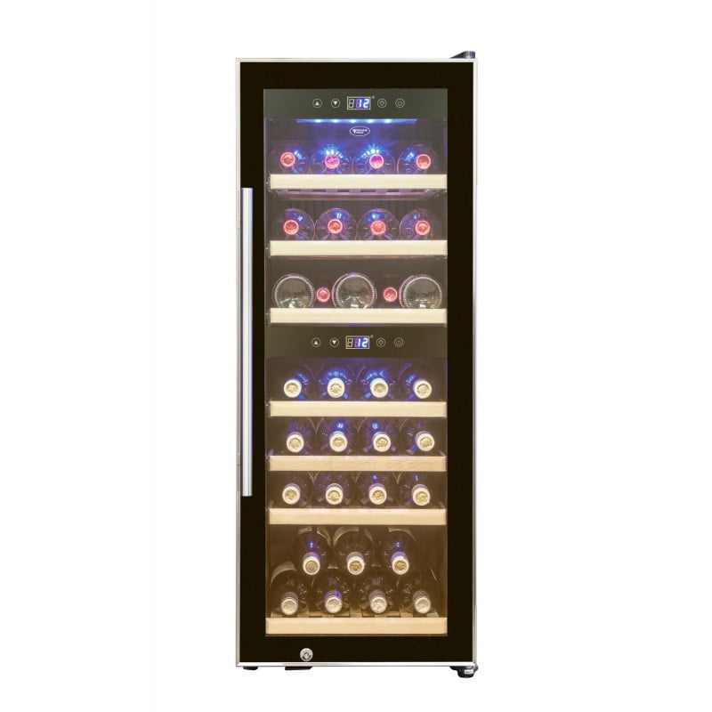 Новый компрессорный винный шкаф COLD VINE C50-KBF2 прекрасно подойдет для хранения частной коллекции вина, так как позволяет разместить в двух отдельных температурных зонах 38 бутылок типа «Бордо» с поддержанием в каждой из них отдельной температуры, идеальной для хранения белых и красных вин. С помощью простой и понятной сенсорной панели можно установить температуру в верхней зоне от +3°C до +12°C, а в нижней от +12°C до +20°C.