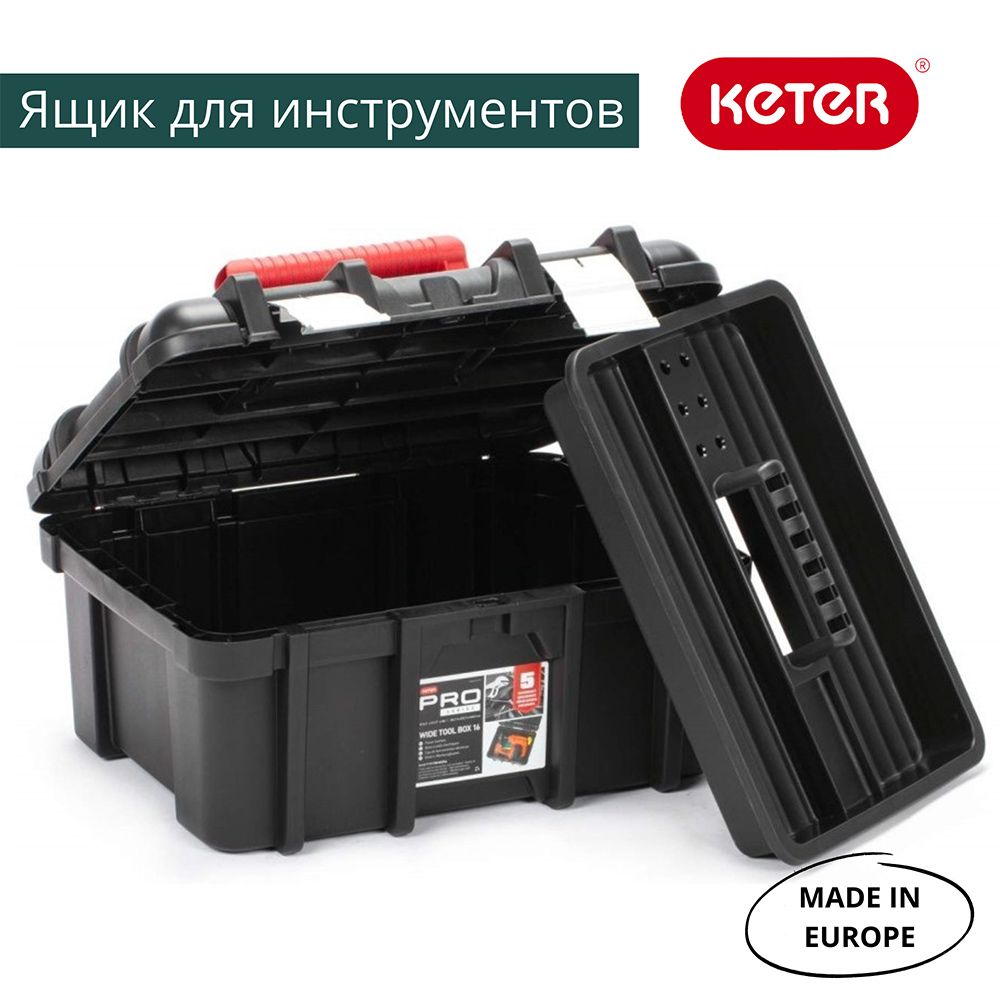 Ящик WIDE TOOL BOX 16" ML отличается высокой прочностью и износостойкостью, имеет широкую ручку для переноски. Закрывающаяся крышка и металлические защелки обеспечивают защиту содержимого при транспортировке.