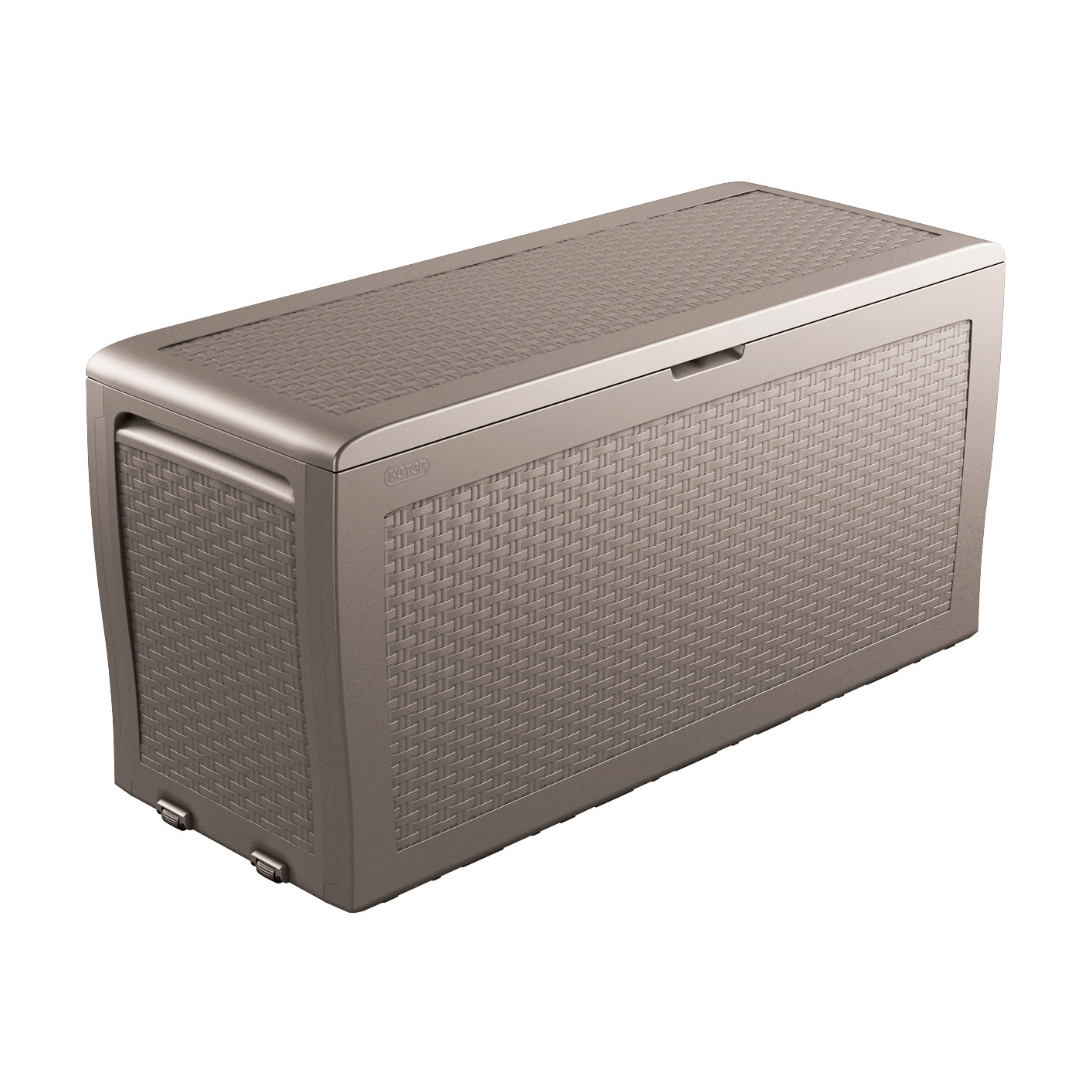Самоа - превосходный сундук для подушек и садовых аксессуаров. Крепкий и прочный ящик. Полностью устойчив к погодным условиям и ультрафиолетовому излучению. Ящик изготовлен из пластика, поэтому он не нуждается в уходе. Встроенные ручки и ролики упрощают перемещение. Легкий и быстрый монтаж – без помощи инструментов. Закрывается на замок (замок не прилагается). Красивое ротанговое плетение. Эстетичный вид – хорошая цена.