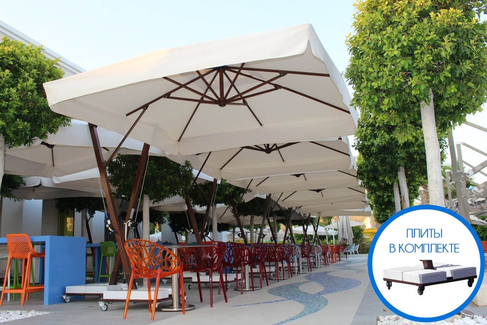 Наличие боковой опоры зонта гарантирует, что тень зонта используется более эффективно, чем с зонтами с центральной стойкой. Зонты Banana изготавливаются разных размеров и форм с учетом различных областей применения и размеров затеняемой площади. Зонты квадратной формы можно поставить в ряд, чтобы полностью закрыть зону затенения. Это предлагает вам очень гибкое и экономичное решение по сравнению с перголой или другими типами навесов.