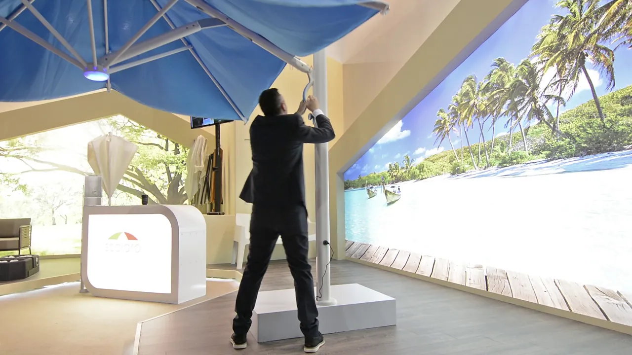 Новинка 2021 года от фабрики SCOLARO - уникальный зонт Astro Timber - союз инновационного будущего и традиционной классики. Гармонично вписывается во все возможные открытые пространства, где необходимо создать тень. Больше не нужны механизмы и тросы для открытия зонта, данная новинка работает на газовом поршне. Легким нажатием кнопки зонт плавно открывается и закрывается. Кроме того, новая система открытия-закрытия позволяет не убирать из-под зонта мебель, зонт аккуратно придвигается к опоре и не нависает над мебелью.