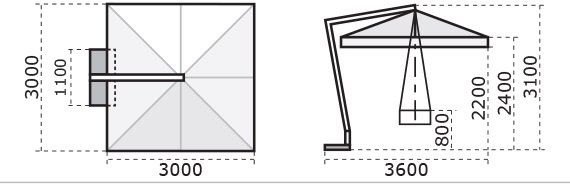 Pompei Braccio - элегантный зонт повышенной прочности с боковой опорой, идеально подходит для использования в уличных кафе и массовых местах отдыха. Подходит для использования на площадках возле бассейнов, балконах и террасах.